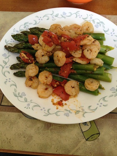 А как ты делаешь аспарагус с креветками и сырно-чесночное пюре?