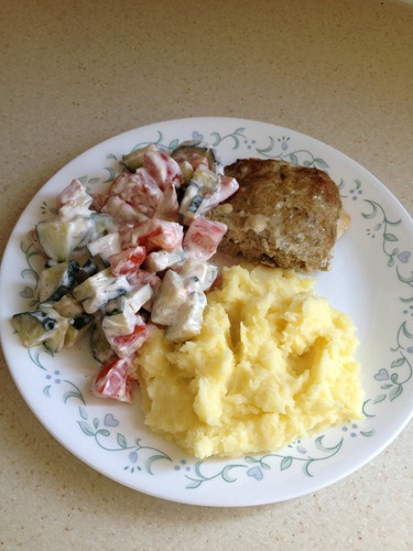 ну и напоследок - простенько но вкусно. мясной рулет с сырно-чесночным пюре и салатиком. на этой неделе узнала что мясной рулет он же митлоуф я тоже готовлю неправильно...