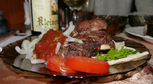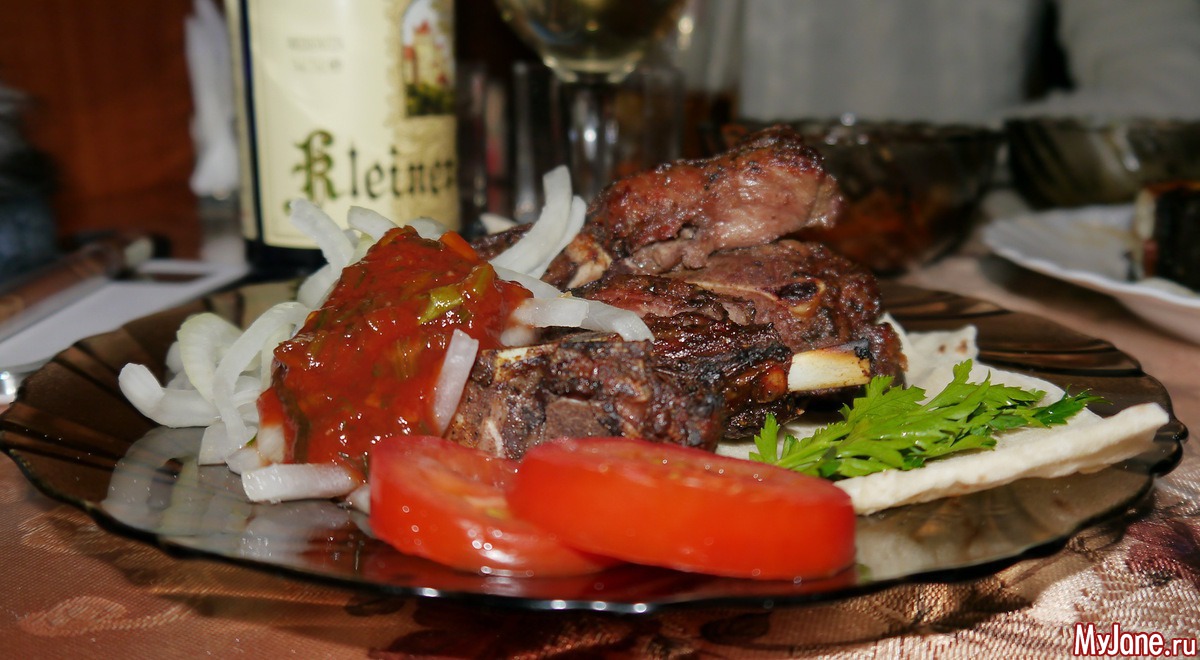 И бараний шашлык с огроменными кусками, сочный и вкусный из той же серии шашлычки)