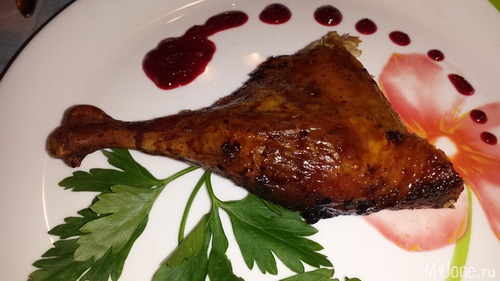 Утка с медовой корочкой в бруснично-смородиновом соусе