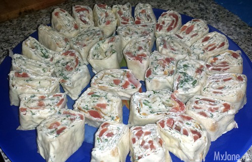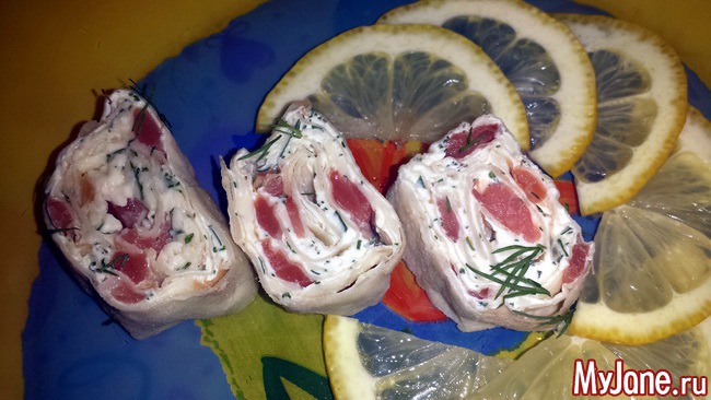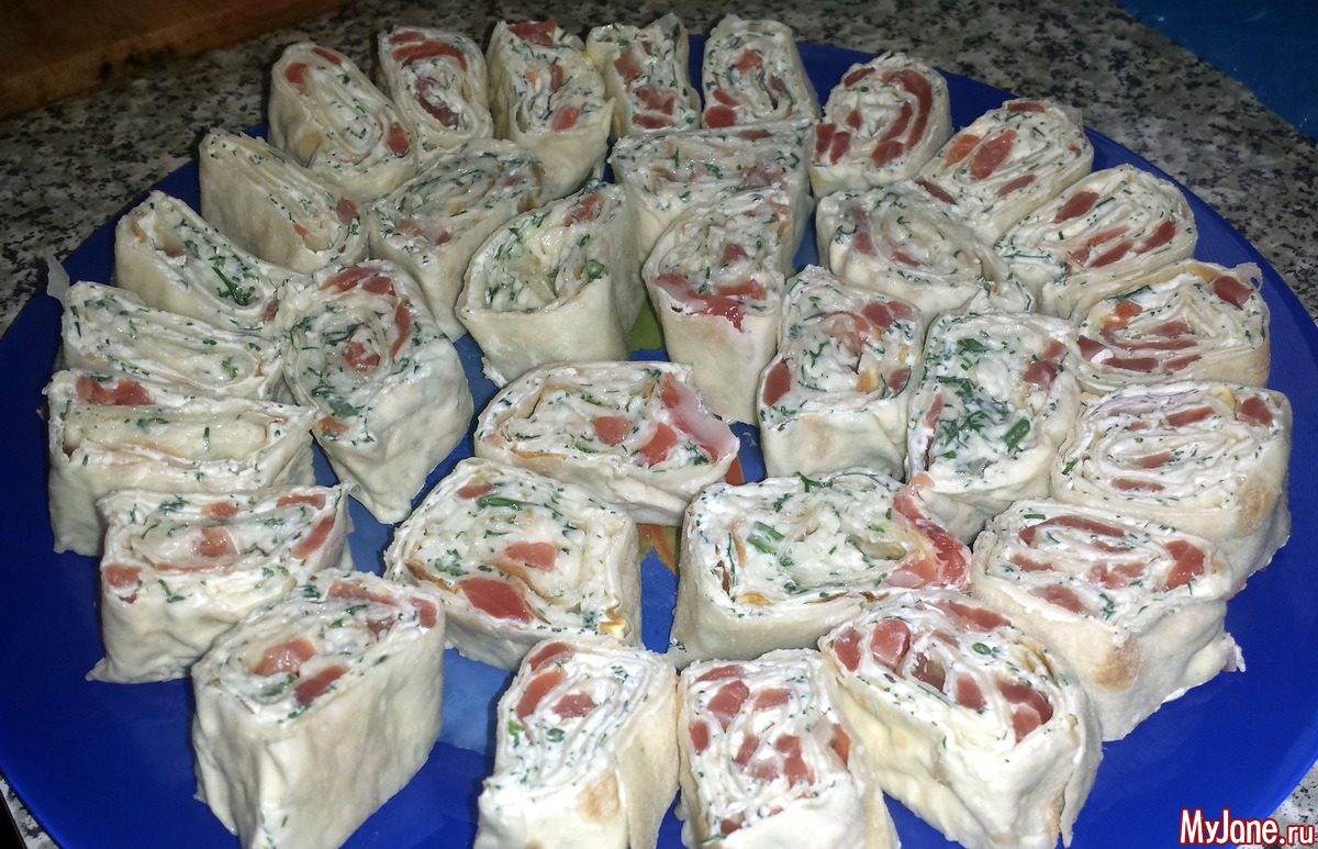Рулеты-роллы из лаваша с красной рыбкой и творожным сыром с зеленью