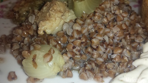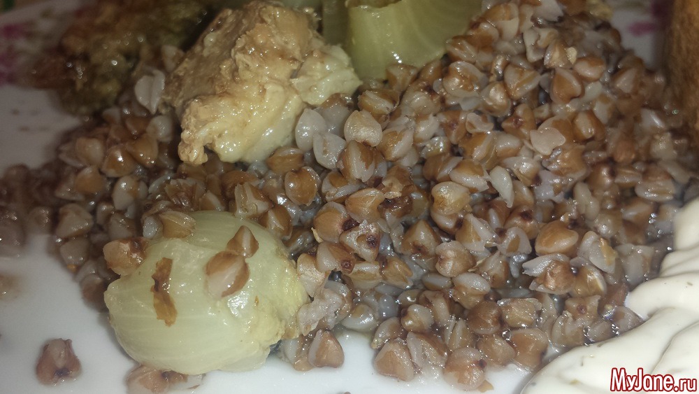 Просто гречка с вкусным мясом тушеным (не помню какое, но очень вкусное)