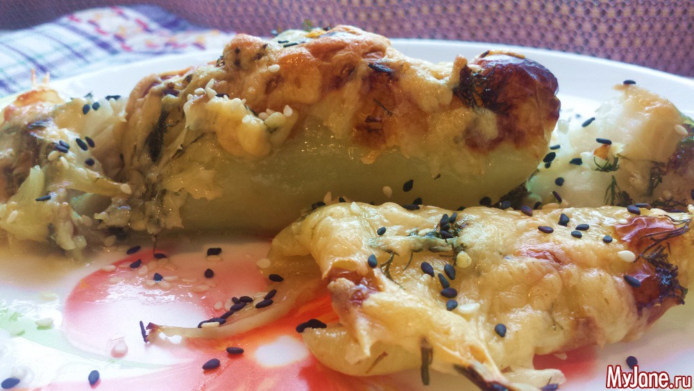 Палтус запекся под сыром с белым перцем и с черным кунжутом