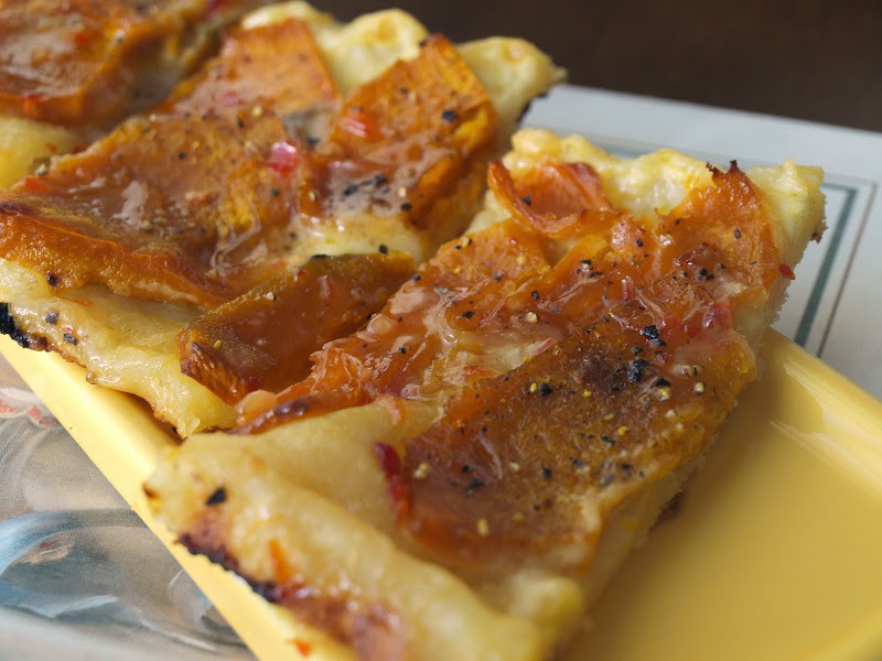 там на тесто слоеное намазываешь сметану, затем выкладываешь дольки тыквы, и сверху немного кладешь кисло-сладкого чили-соуса....описание мне понравилось и в целом неплохо получилось.....но мои ожидания рецепт все равно не оправдал....сметана куда-то вообще испарилась