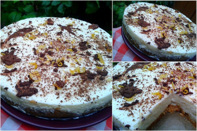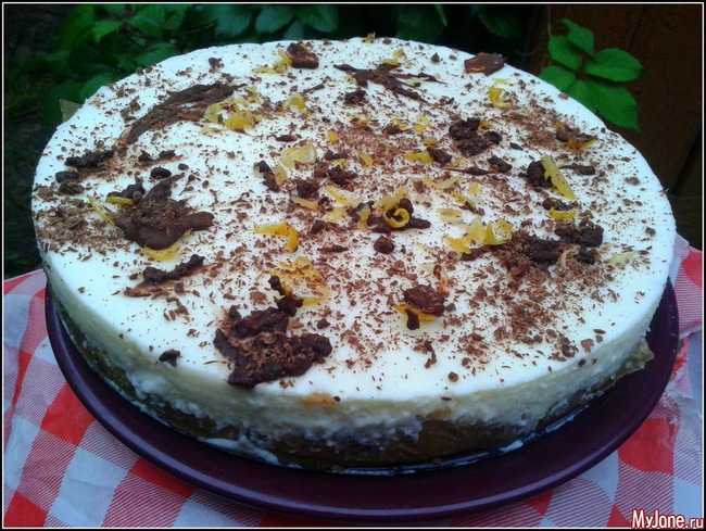16. Украшаем сверху готовый чизкейк цедрой, тертым шоколадом, любым топпингом и т. д. (Я украшала цедрой на терку, шоколадом на терку и плавленным шоколадом)