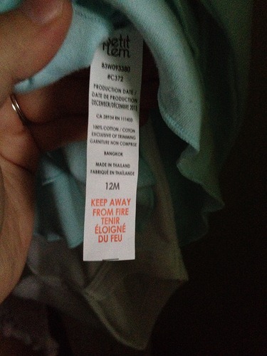 почему на бирках детской одежды большими красными буквами пишут "не бросать в огонь/не подносить к огню"?