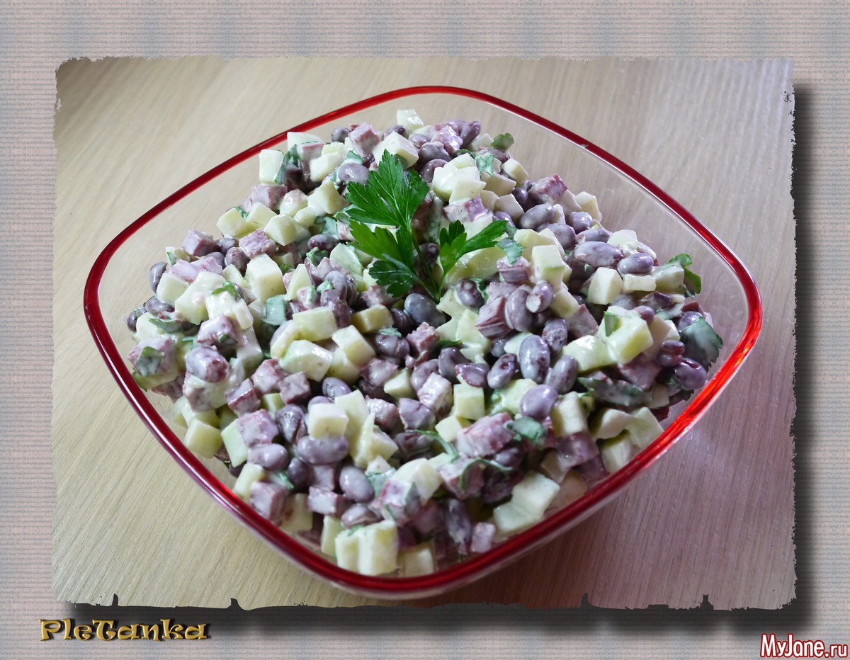 Универсальность этого салата заключается в основном компоненте. По настроению он хорош и с колбаской и с селёдкой