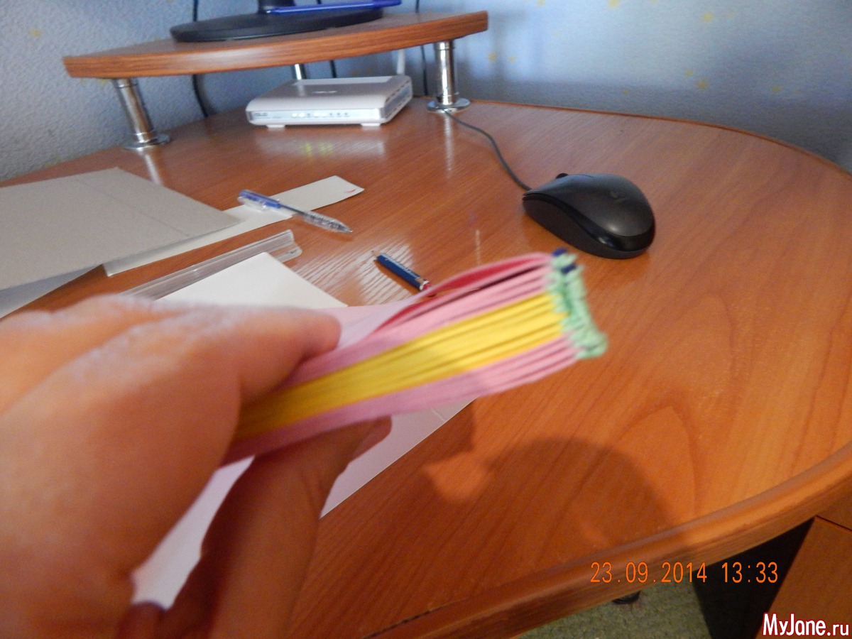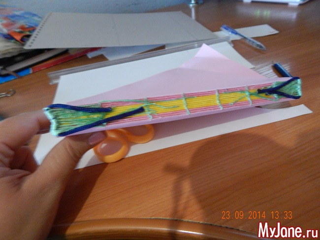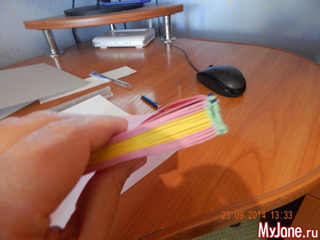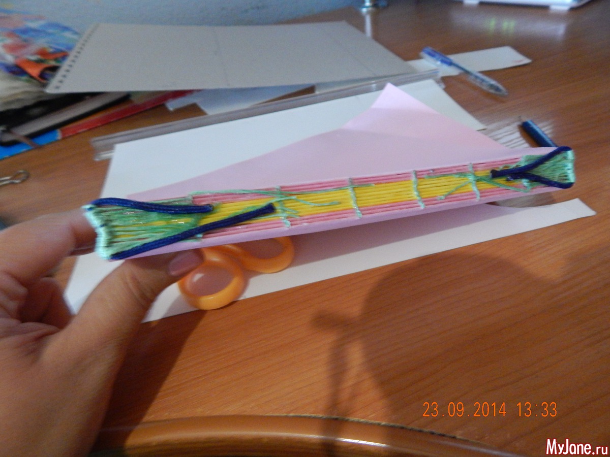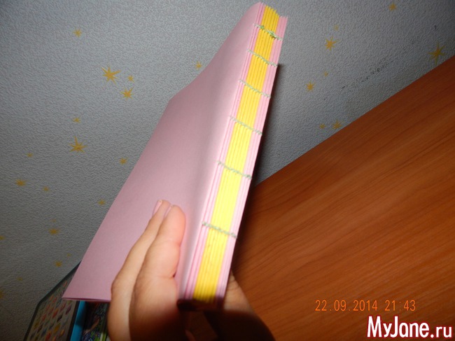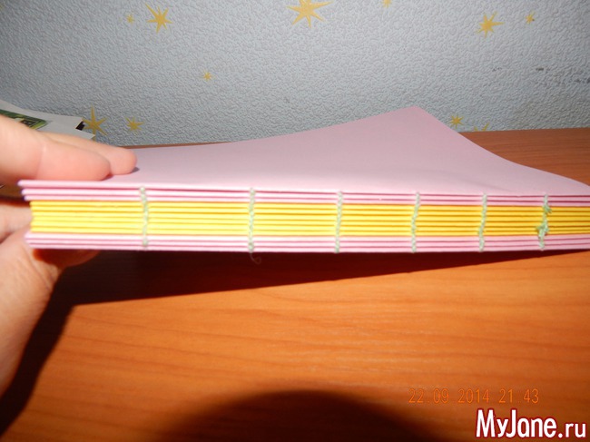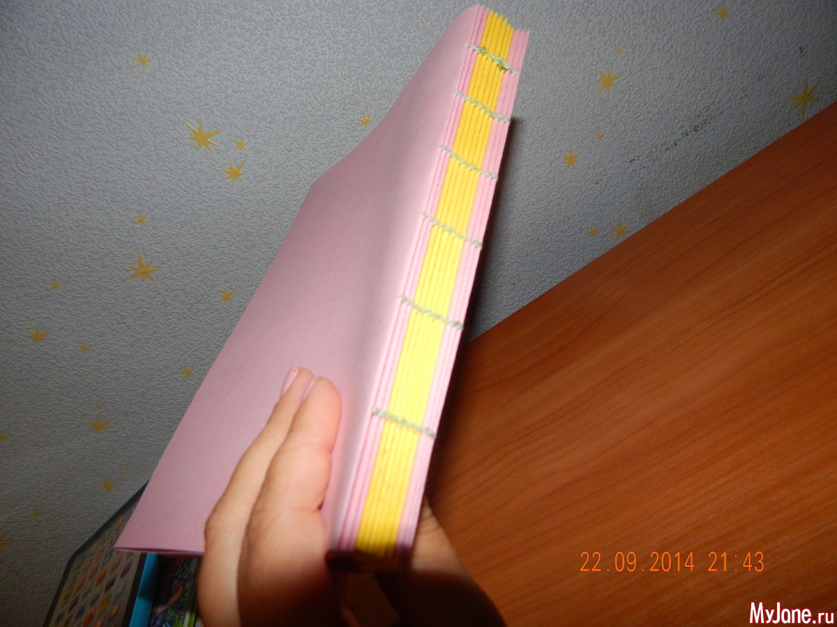 Всего 12 тетрадок (6 розовых и 6 желтых). Серединка - 6 желтых тетрадок, а по краям розовые.