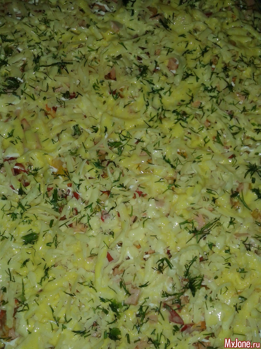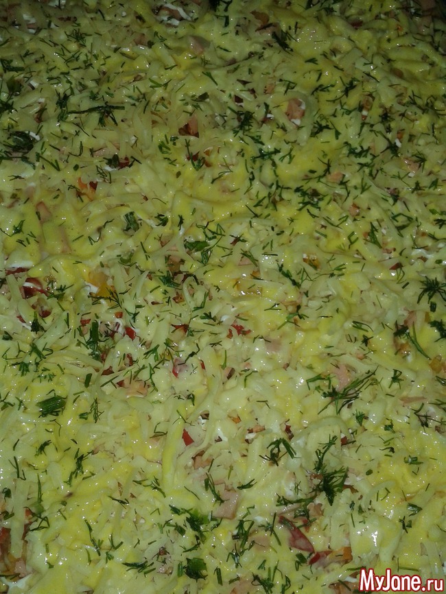 5 ст. ложек майонеза, 2 ст. ложка растительного масла, 2 яйцо. Все перемешать и залить сверху.