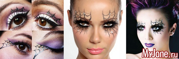 Но если вы не хотите "кромсать" себе лицо и маскировать себя до неузнаваемости, выбирайте более легкие варианты макияжа, с некоторыми "страшными" деталями, например, хорошей идеей для вас будет нарисовать паутину или паучка на лице.