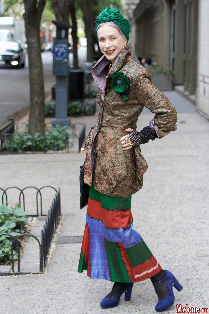 У нас есть соседка, она все, буквально ВСЕ вяжет себе. Вплоть до белья и верхней одежды. Необычно, иногда странно, но действительно красиво!!! Вижу часто тетечку, которая одевается во все старомодное - шляпы, перья, какие-то бусы. Но это не наляпано, а очень элегантно, даже интересно.