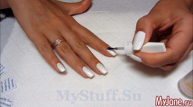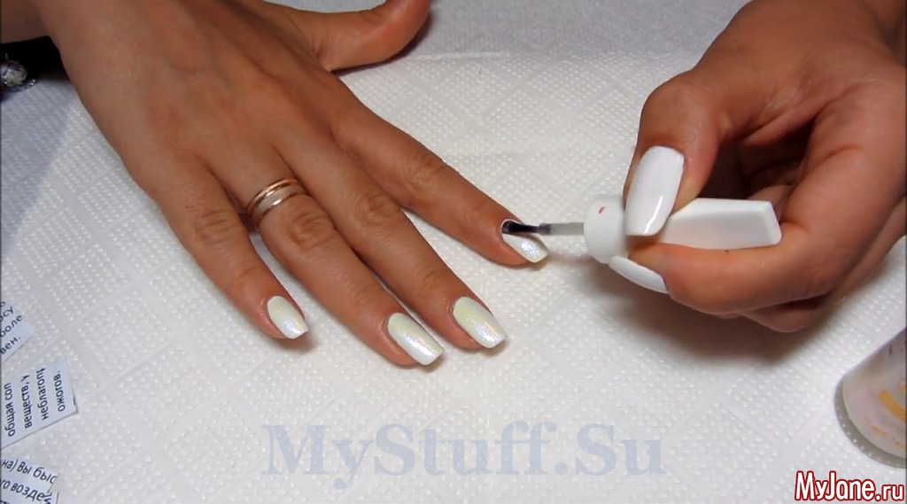 Аналогично со всеми остальными пальчиками. Завершающий этап – нанесение прозрачного лака, чтобы закрепить результат.
