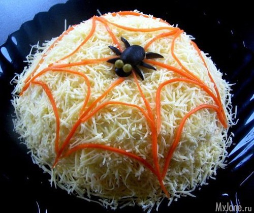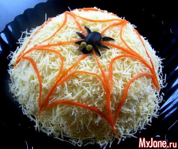 Вот такой оригинальный салат "Паутинка" в домашних условиях можно подать на праздник.