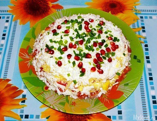 Перед подачей заправляем салат майонезом и подаем к столу.