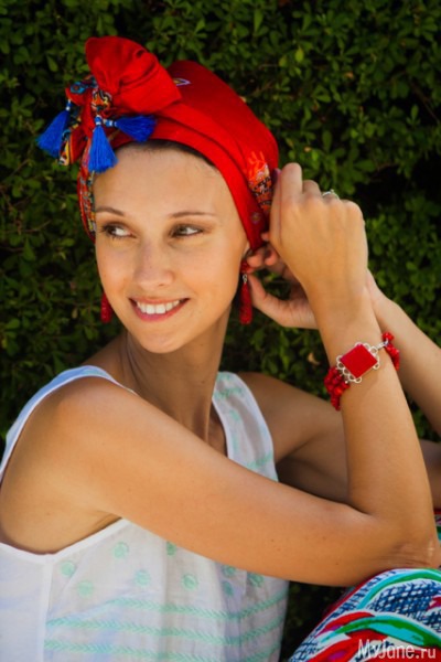 3.Это безопасно. Этот пункт особенно актуален у нас, в Израиле, или на других югах, во время отпуска, где вредное воздействие солнца на волосы и голову очень сильно. Чтобы защитить волосы от вредных солнечных излучений, а голову от солнечного удара, можно повязать на голове платок как альтернативу шляпам, которые к тому же закрывают пол-лица, которое у нас в это время загорает. К тому же, в отпуск много шляп с собой в чемодане не увезешь, а платков можно положить самых разных, по платку на каждый день.