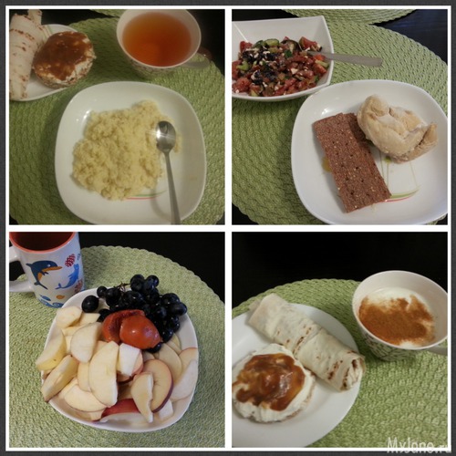 8:30 завтрак: пшенная каша, рулетик (лаваш+творог+полендвица+огурец), бутер (хлебец+творог+детское пюре), чай