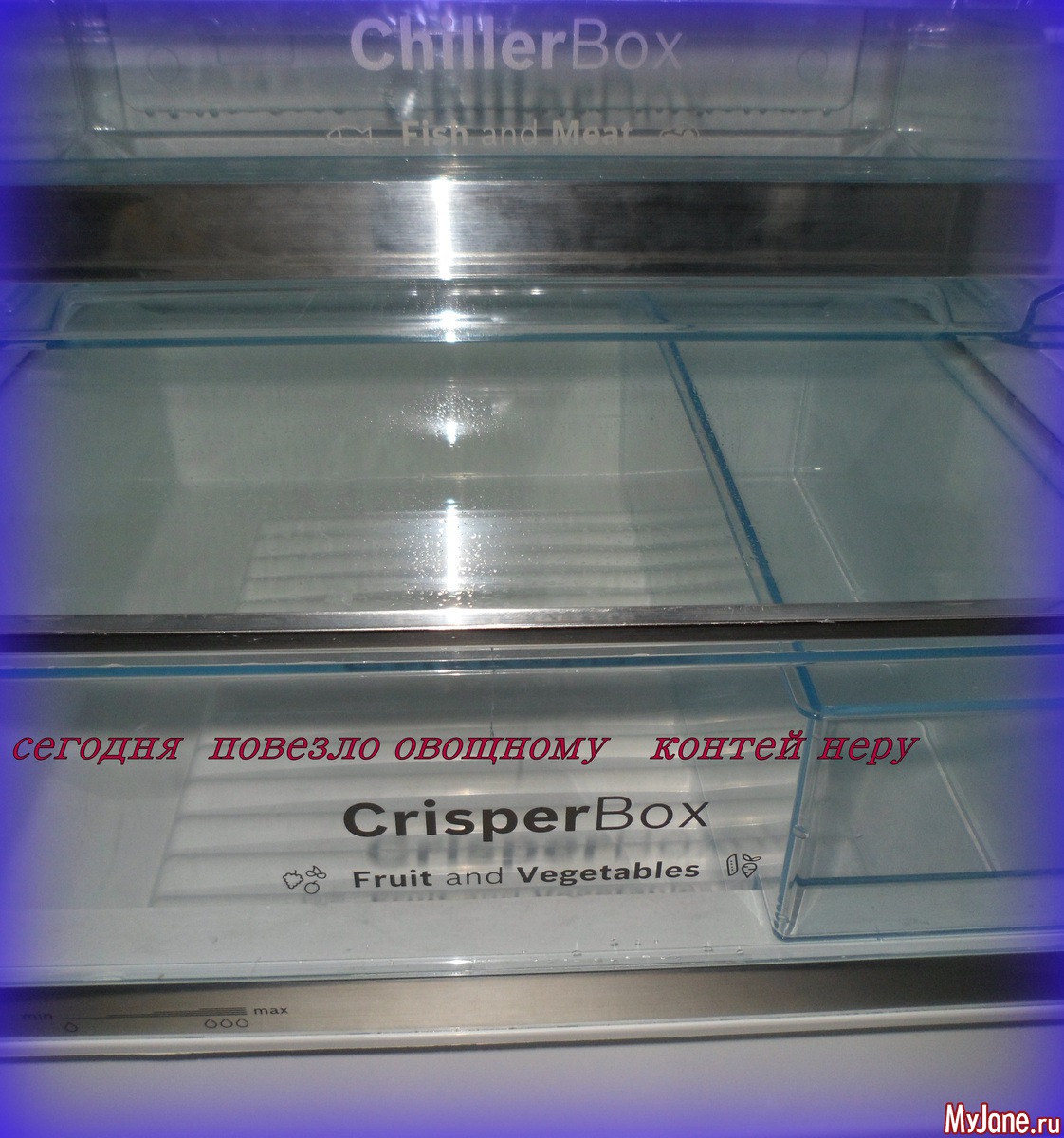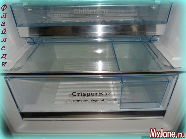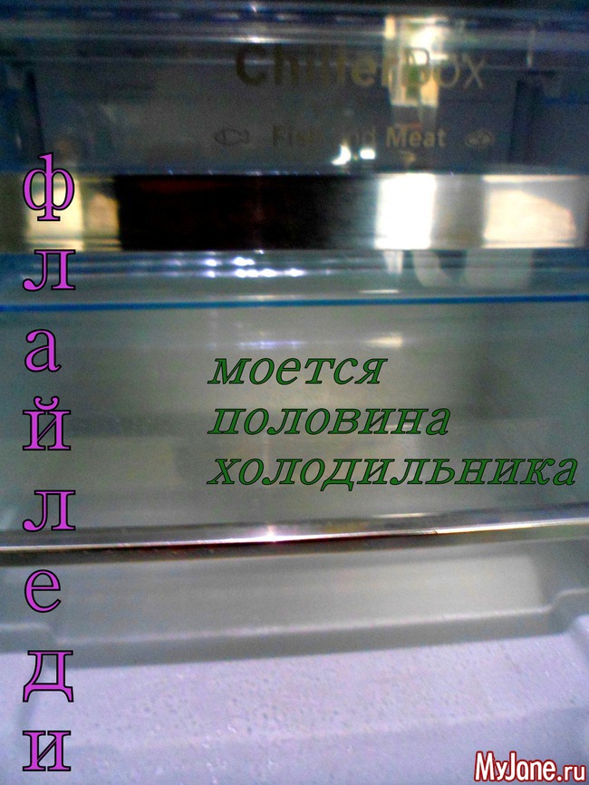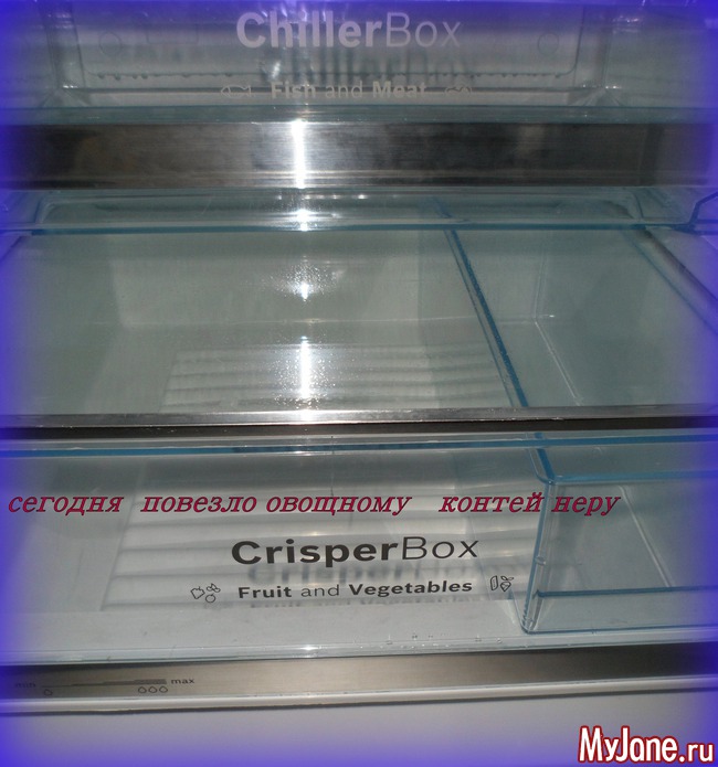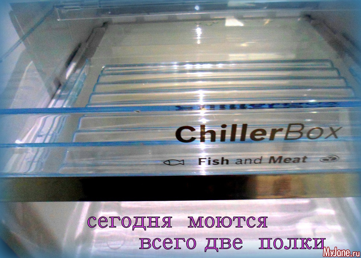 Протираю по мере необходимости некоторые места, или частично мою освободившуюся от продуктов зону внутри холодильника... Сегодня повезло двум нижним полкам: овощной и бутербродной...