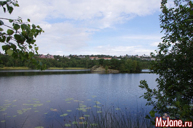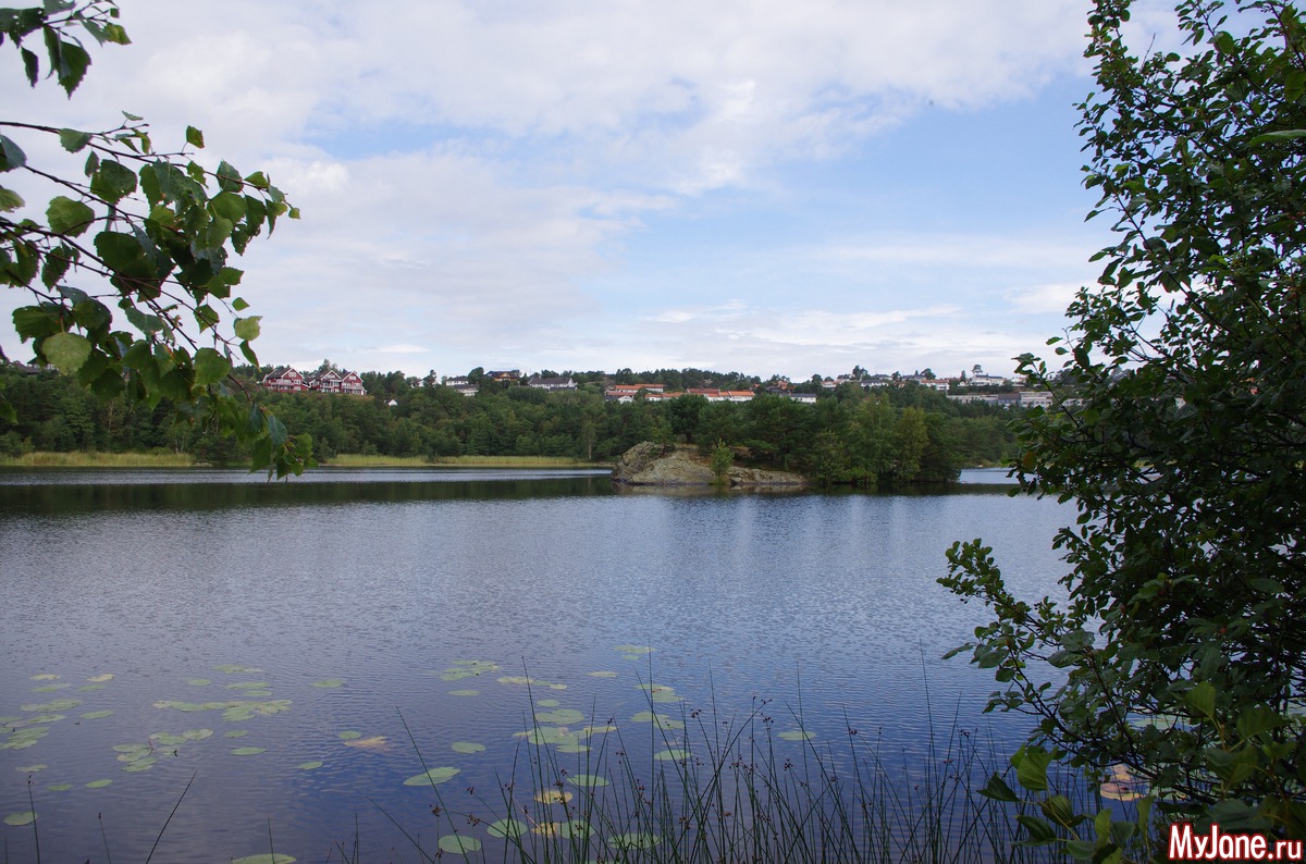 Трудно поверить, но это безмятежное озеро находится всего лишь в 100 метрах от дома. Искупаться, правда, не получилось. Холодновато как-то было. Но однажды утром, я собралась, встала, оделась в спортивную форму и побежала на зарядку вокруг озера. Бежала и прямо чувствовала себя настоящей коренной норвежкой.