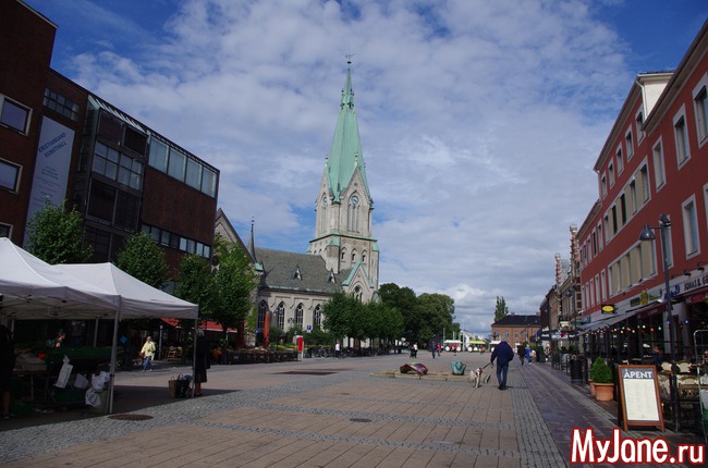 Центральная улица города Кристиансана. Третий по величине город в Норвегии с населением около 20 000 человек. Деревня, одно слов.