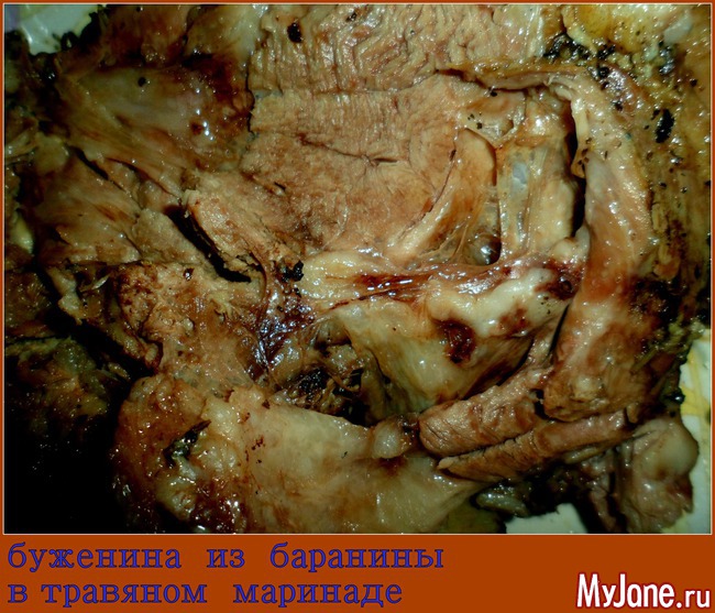 Баранина 800 г, вино белое полусладкое 250 мл, сметана 3 ст. ложки, горчица 3 ч. ложки, чеснок 2 зубчика, специи по вкусу, соль по вкусу.