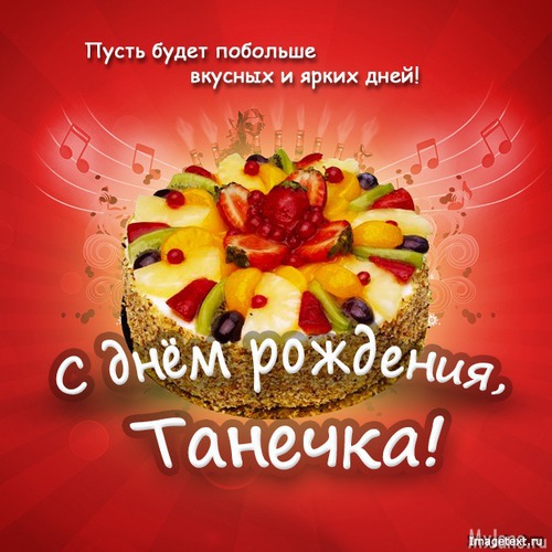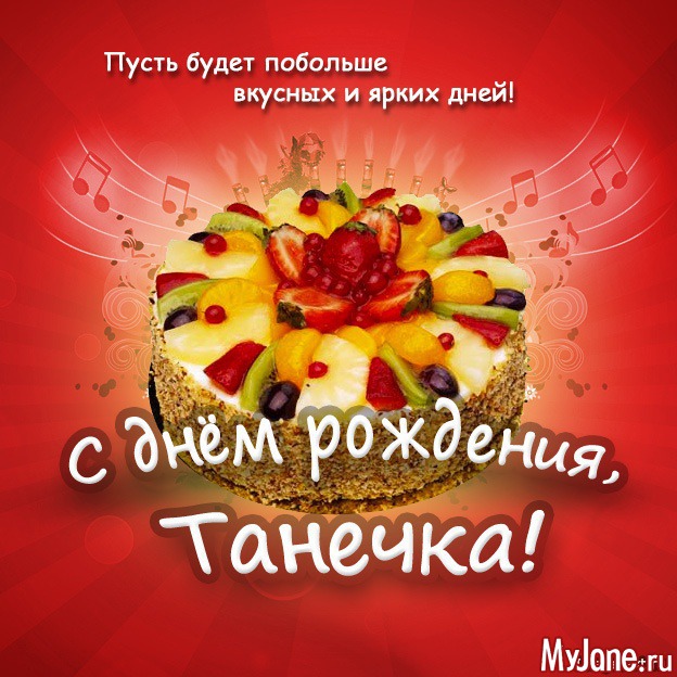 Еще одна Танечка )) Танюша, с Днем Рождения тебя!!! Желаю тебе такого же жизненного задора, какой у тебя сейчас. Пускай все твои задумки скорее осуществятся. Ярких, незабываемых встреч, верных друзей, праздничного настроения, уютной атмосферы в доме, любви и теплоты в отношениях, счастливых и радостных дней. Просто пускай все будет по твоему!!!