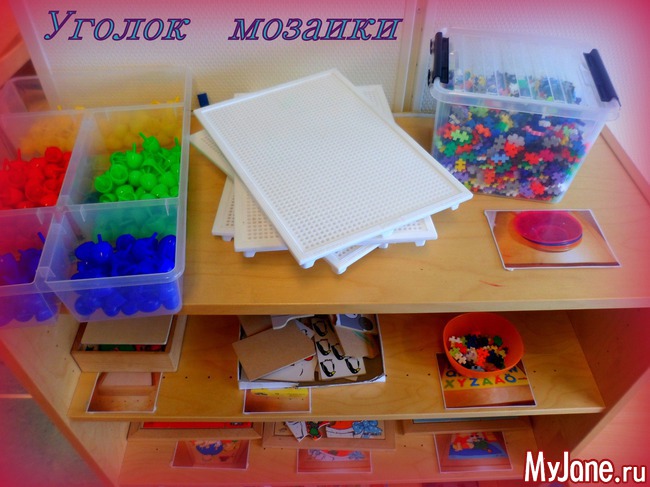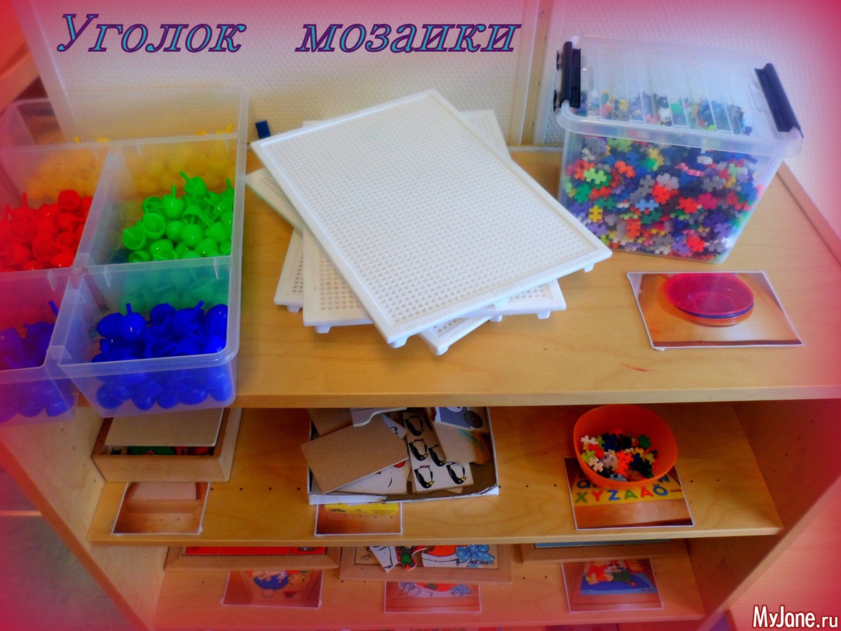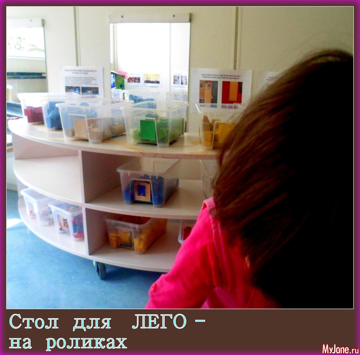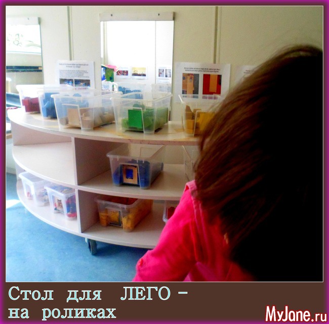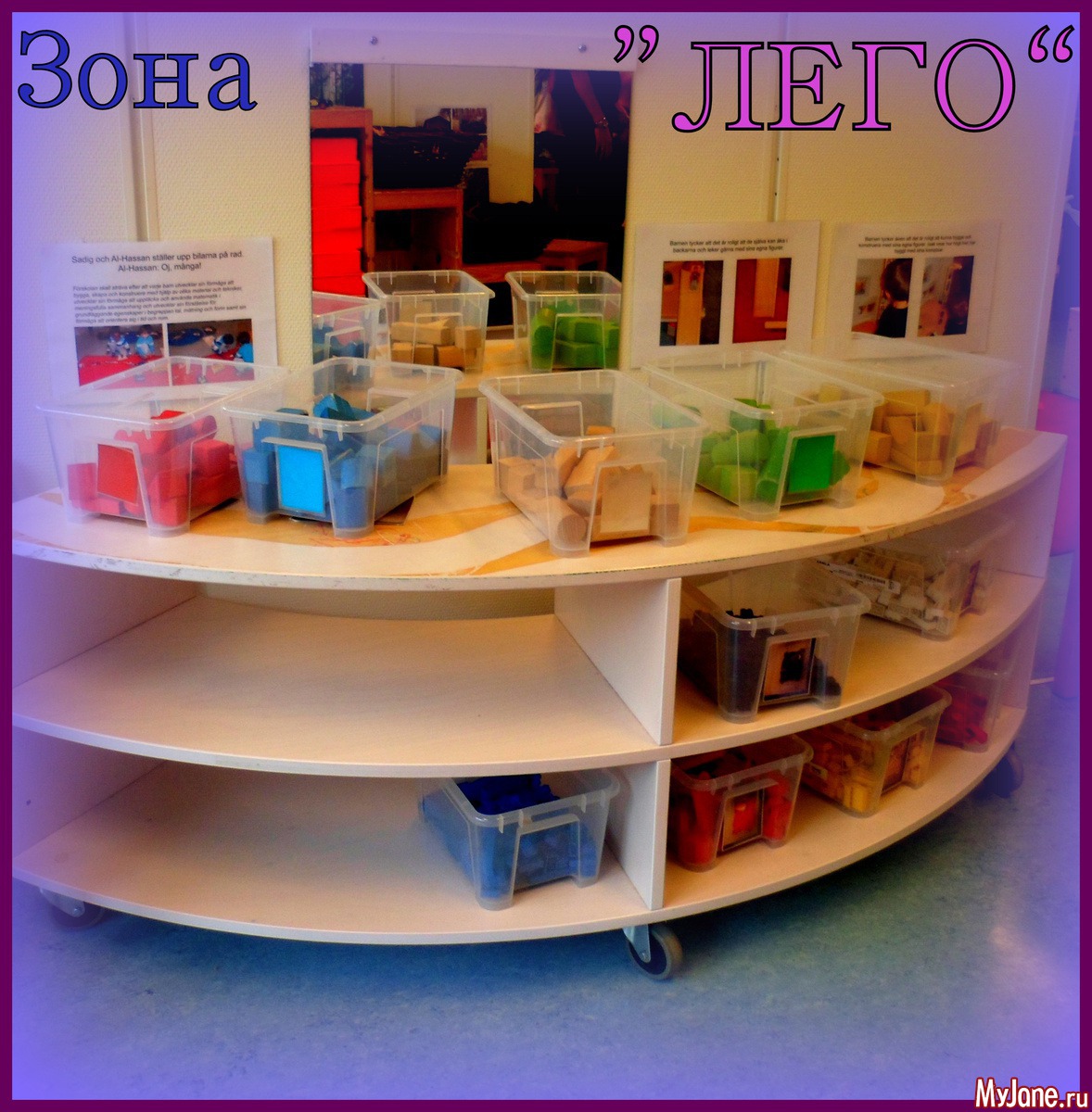 Все занятия внутри группы распределены по разным зонам. В игровой масса конструкторов разного вида. ЛЕГО разложен в контейнерах по цветам... Под это отведена большая трёх-ярусная полка.