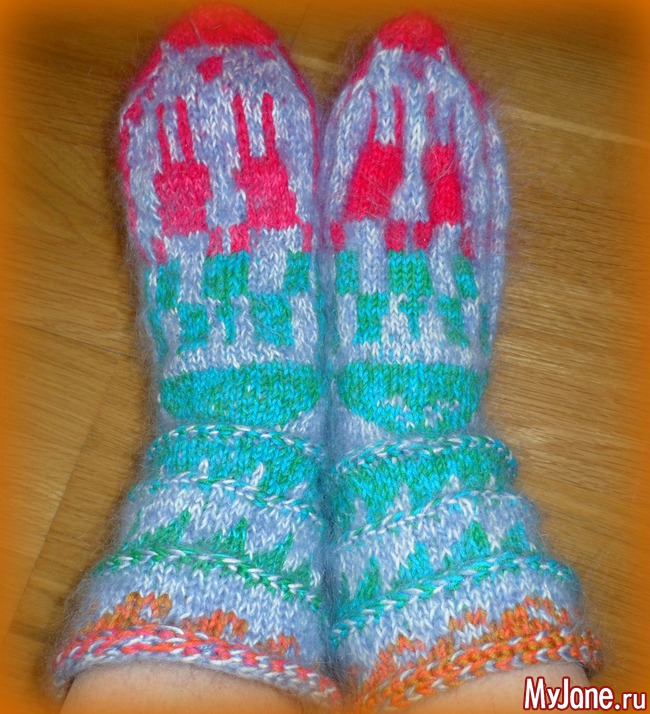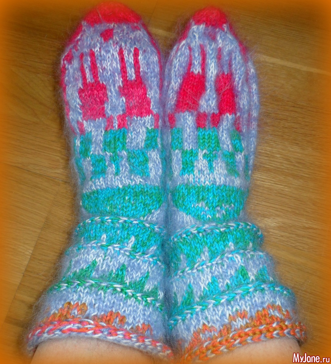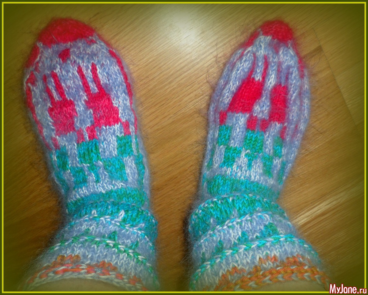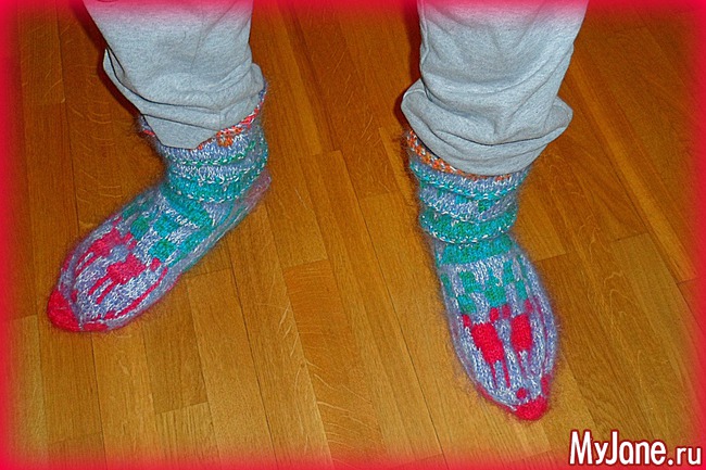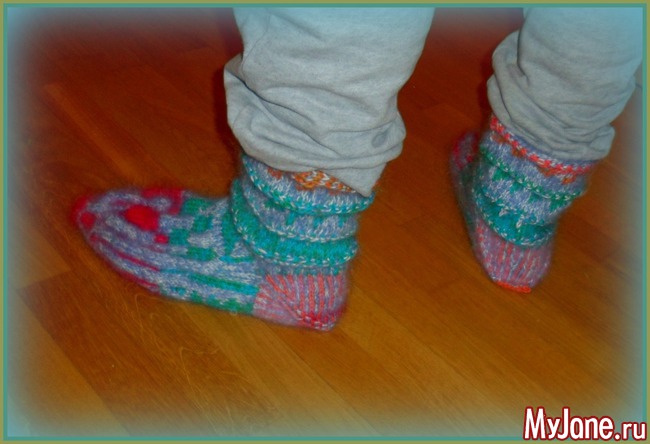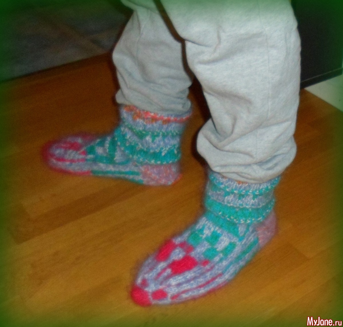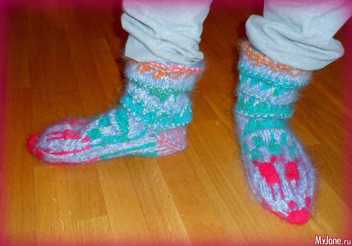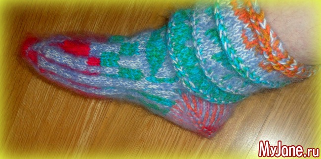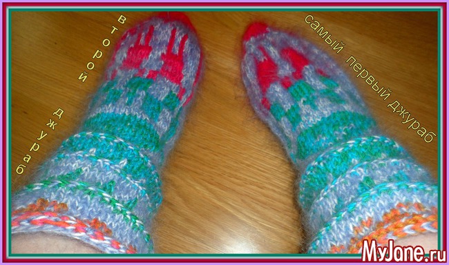 У этой пары джурабов есть одно несомненное преимущество - они тёплые как валенки, т. к. связаны с добавлением махеровой нити.