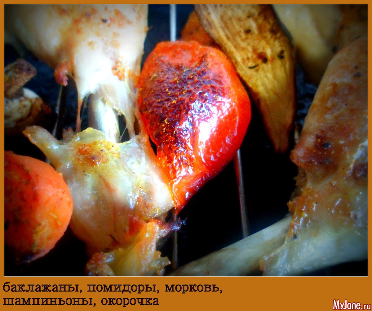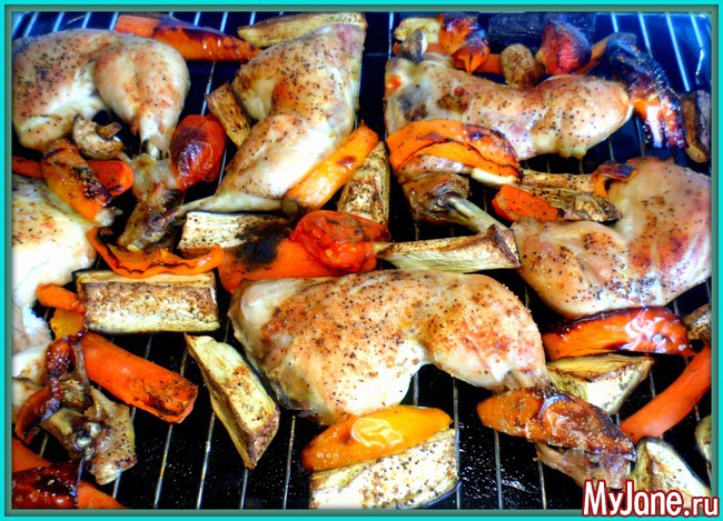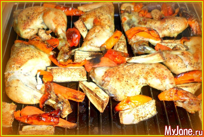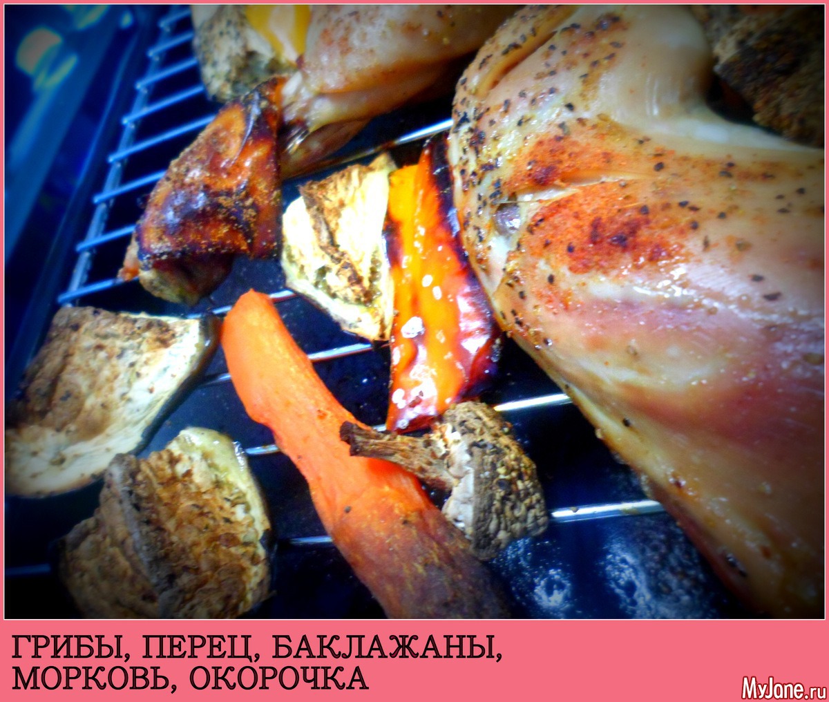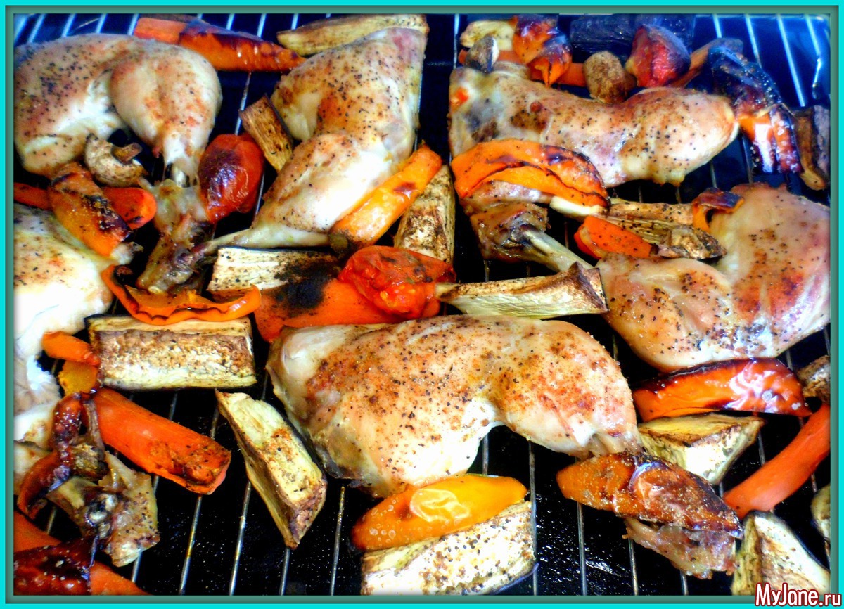 Наряду с окорочками запекаем любые, имеющиеся в доме овощи.