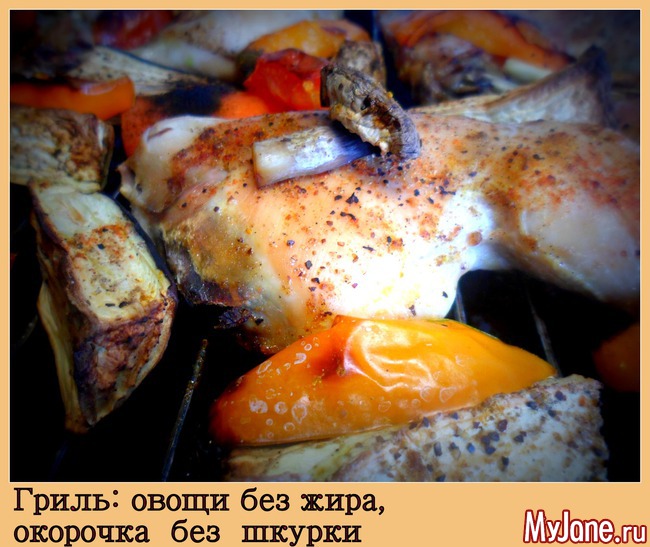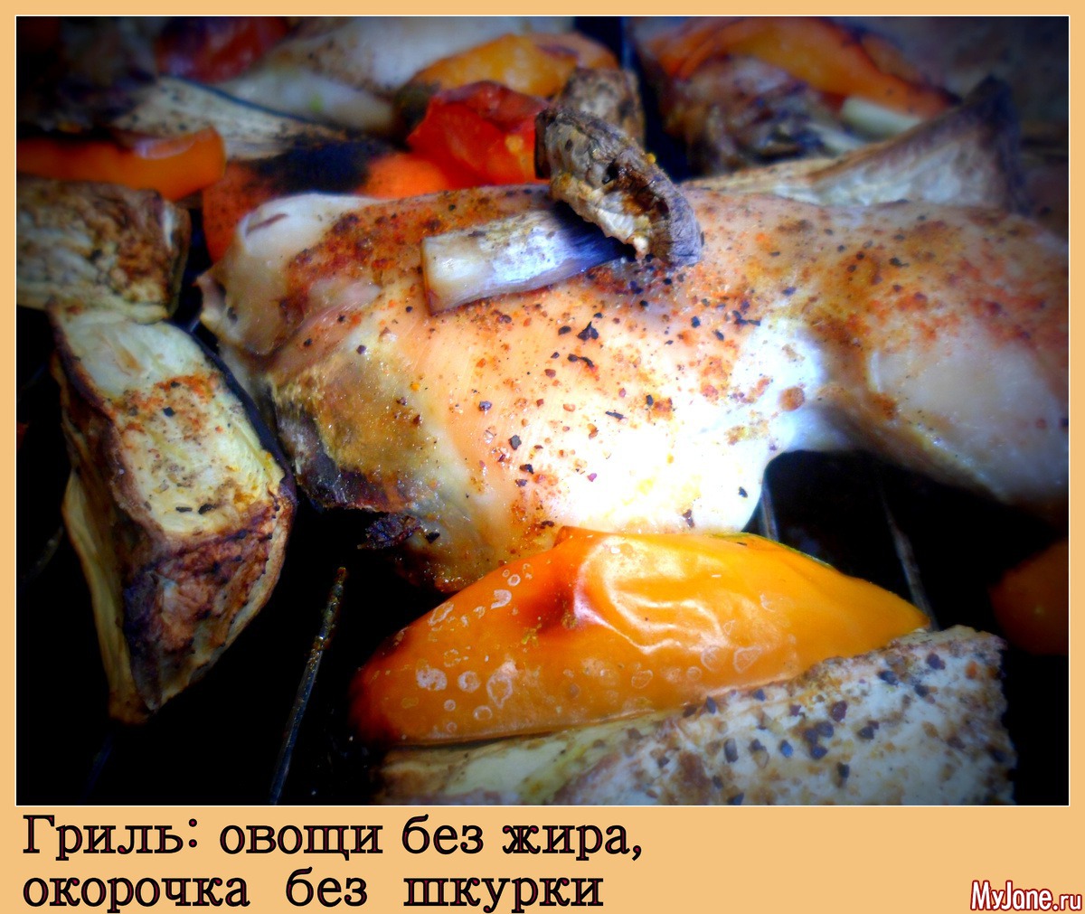 Мы стараемся употреблять минимум жиров в нашей диете, поэтому запекаем окорочка без шкурки и на грильной решётке, чтобы внутренний жир стекал и капал в поддон, оставляя в окорочке - МИНИМАЛЬНОЕ количество животного жира.