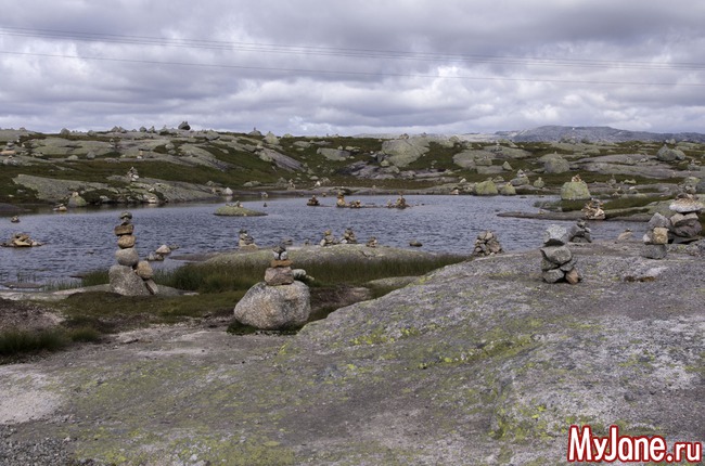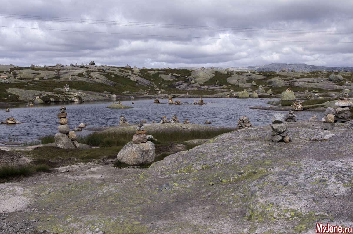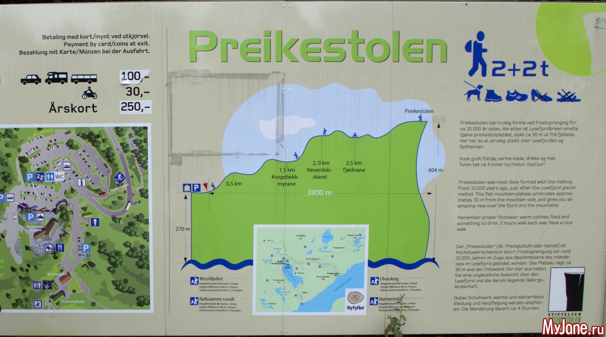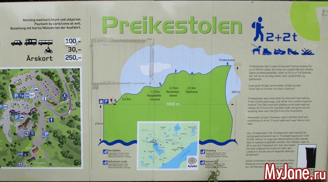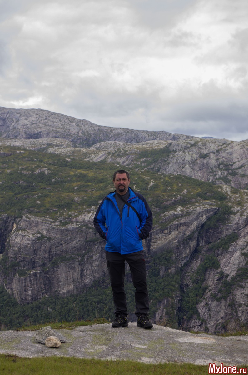 Что такое Прекестолен? Это почти прямоугольная скала, выдающаяся над фьордом. Высота до уровня воды составляет 600 метров. Много-много лет тому назад кто-то из путешествующих, проплывая по фьорду, обратил внимания на это странное сооружение и поставил перед собой задачу добраться до него. Предполагаю, что первое путешествие на Прекестолен было не из самых легких. Но затем туда проложили тропу (если конечно это можно назвать тропой) и по ней повалили туристы. Поток туда идет постоянный и достаточно плотный. Ведь это, наверно, одно из немногих более-менее доступных мест горной Норвегии.