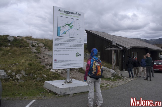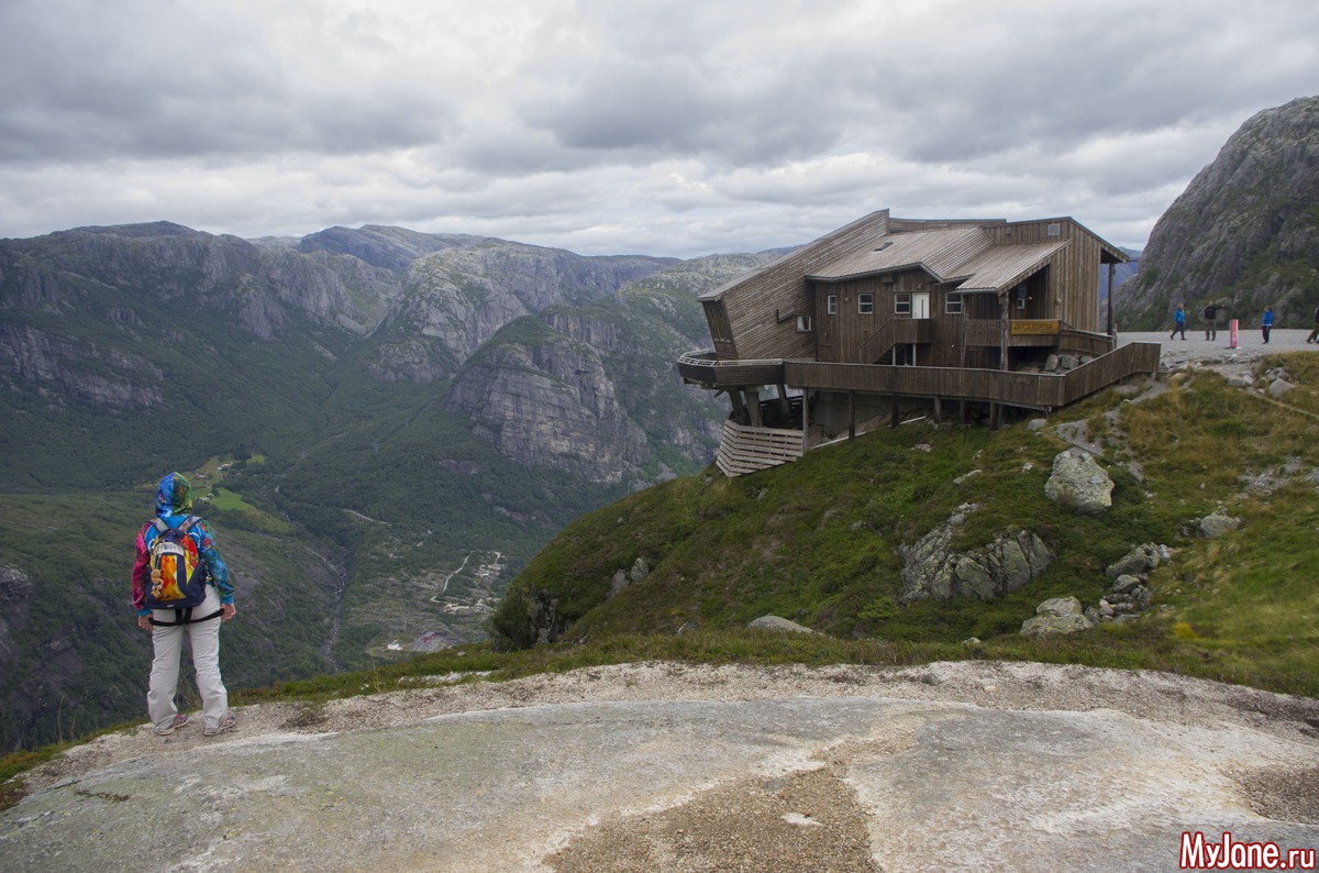 Поскольку на Кьераг - Болтен не попали, фоткаемся в начала тропы на него. Вдали ресторан "Орлиное гнездо". Внутрь не заходили, чтобы от увиденных цен нас не хватил удар.