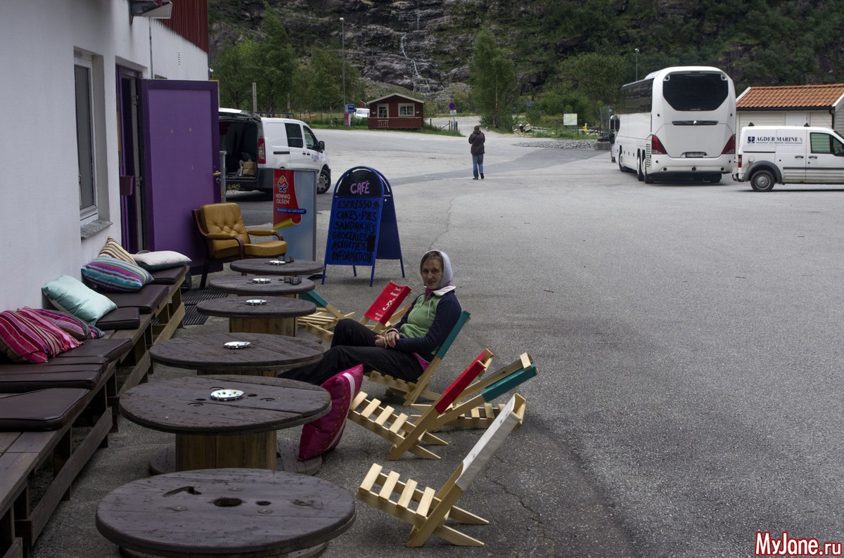 Спустились вниз к устью фьорда. Теперь нам предстоит здесь пару часов дожидаться парома, который ходит только два раза в день. Позже приезжать нельзя, иначе есть опасность не попасть на паром.
