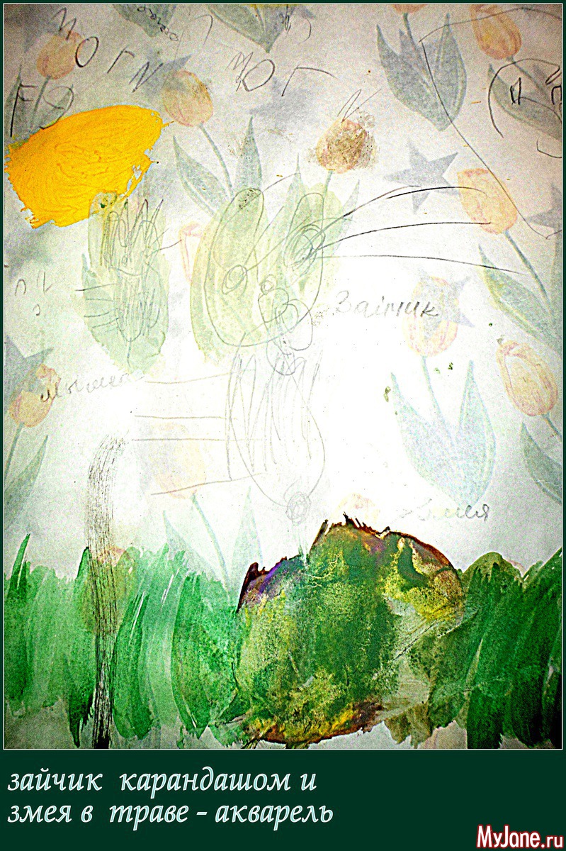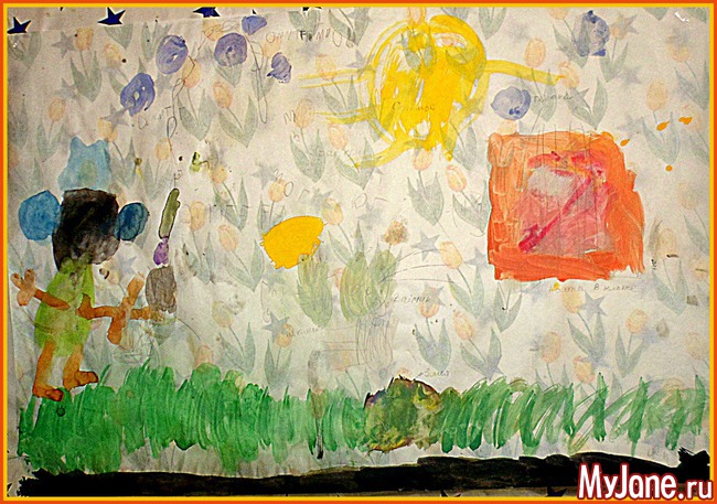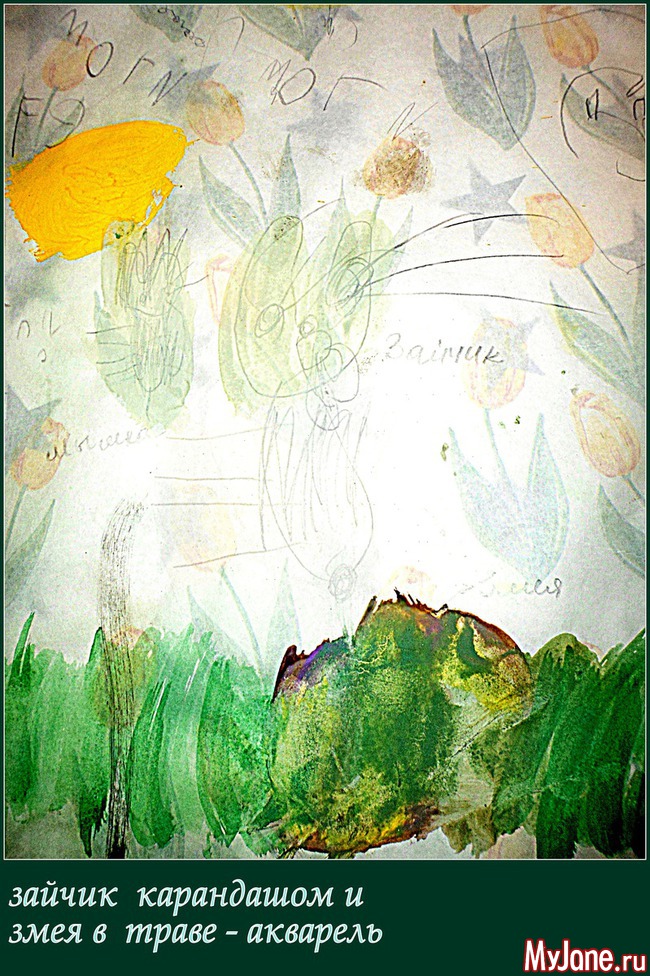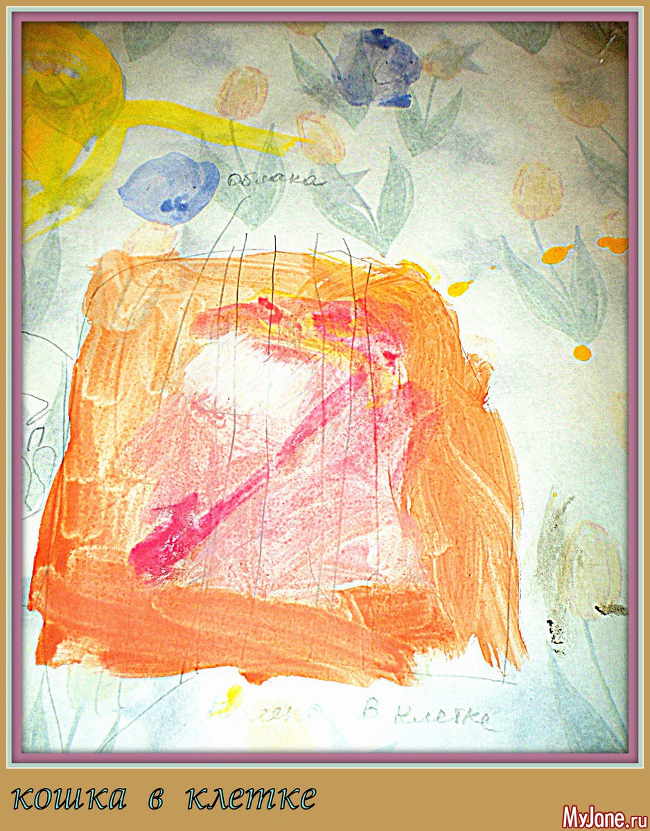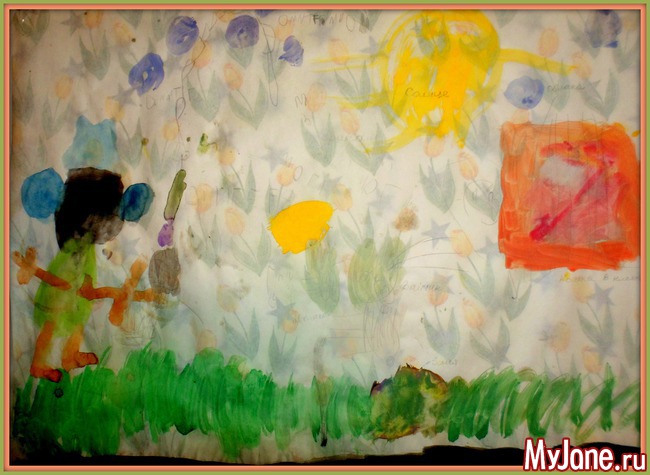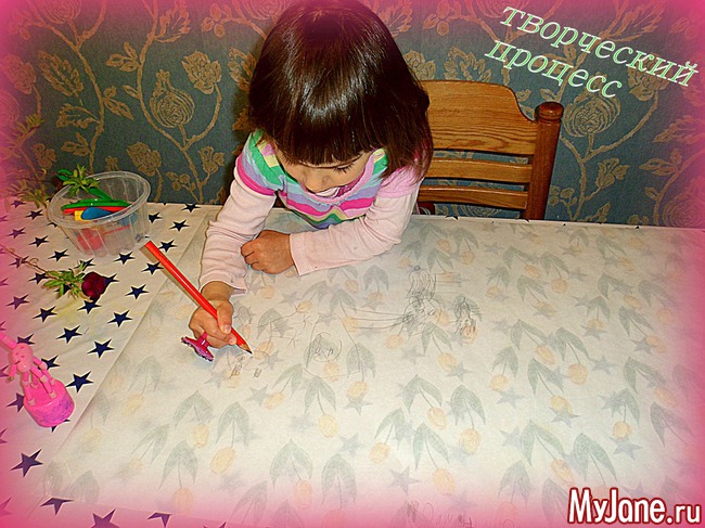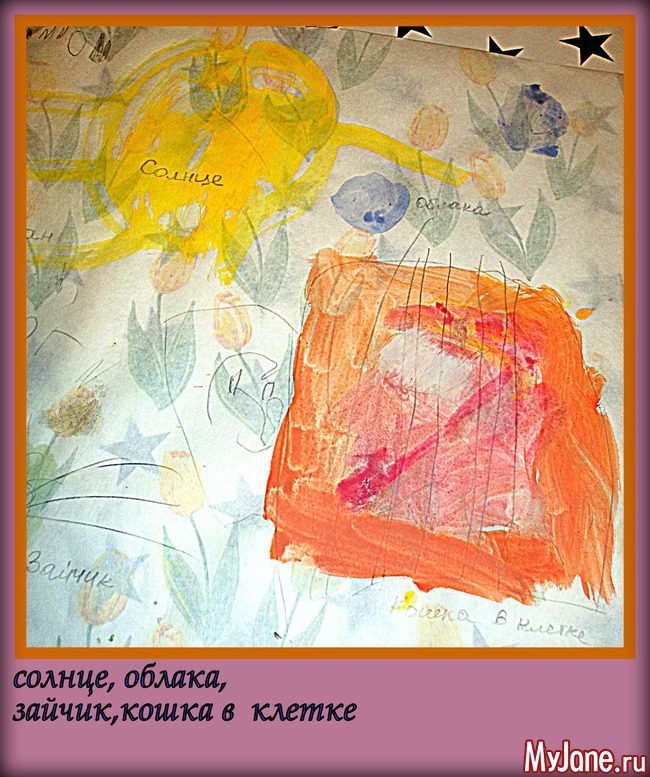 Первое время в детском саду она предпочитала тёмными цветами пользоваться, иногда исключительно чёрным... Нас это несколько насторожило и вот мы стараемся вносить разнообразие в цветовую гамму её работ