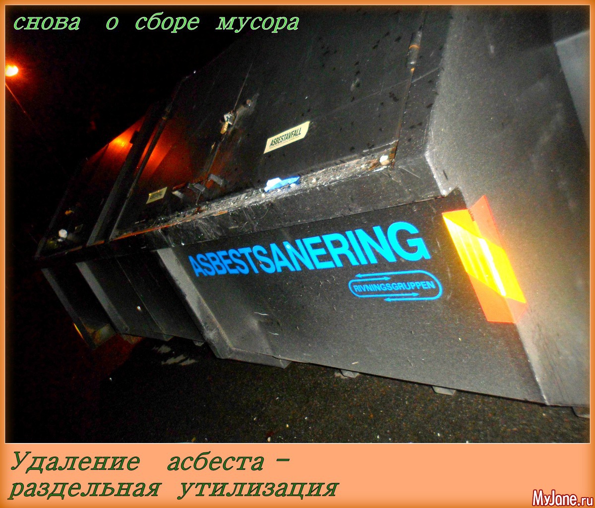 Для асбеста - абсолютно отдельный контейнер при строительных и ремонтных работах.