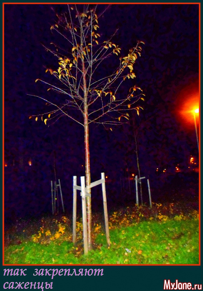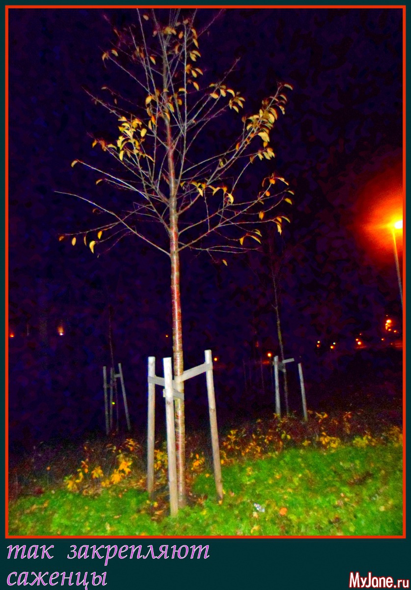 Обратите внимание на бережное отношение к саженцам. Это сакура.