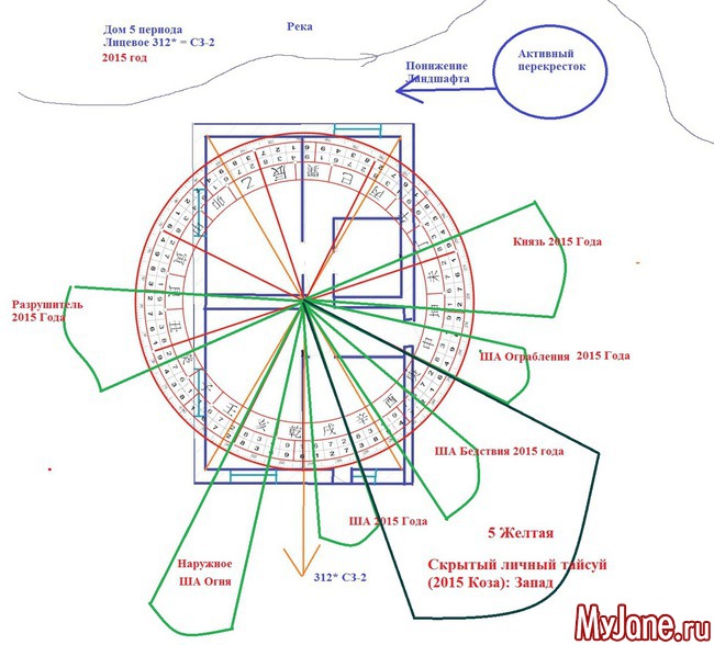 3. Отметьте на плане ежегодное расположение негативных и опасных направлений: 3 Ша, Князь Года, Разрушитель Года, 5 Желтая, Личный Тай Суй.