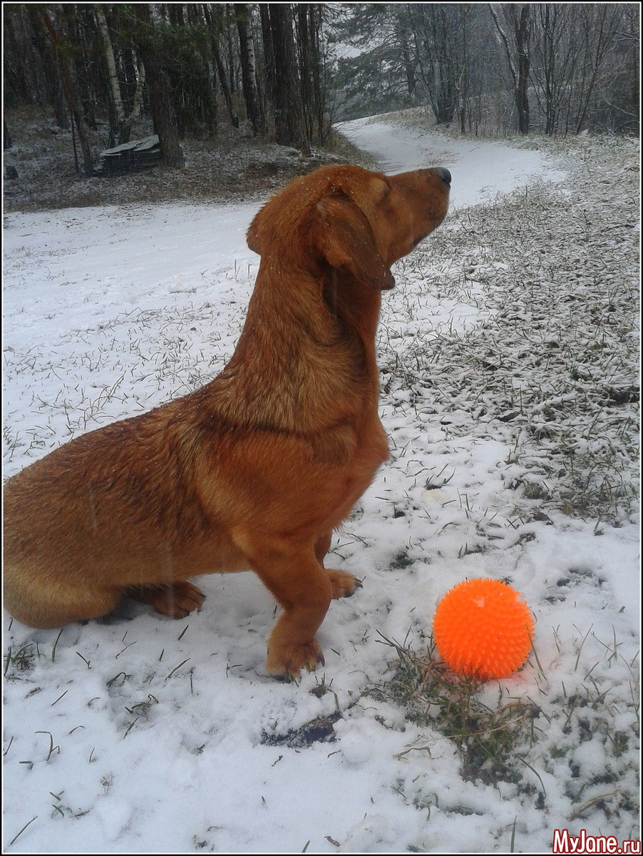 оперся на спинку и в окно смотрит. ))Выпустила на улицу, я дома сижу, а он уже второй час носится по улице с мячиком