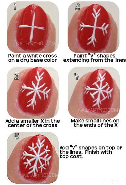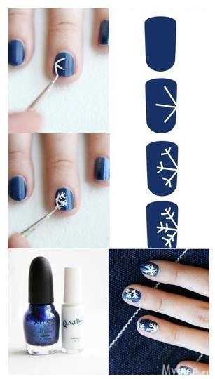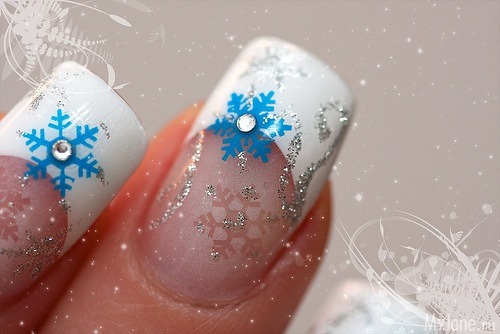 Совет:Когда рисуете зимний маникюр, а особенно такие нежные детали как снег или снежинка, используйте гармонирующие между собой цвета без яркий перепадов иначе всё будет испорчено.