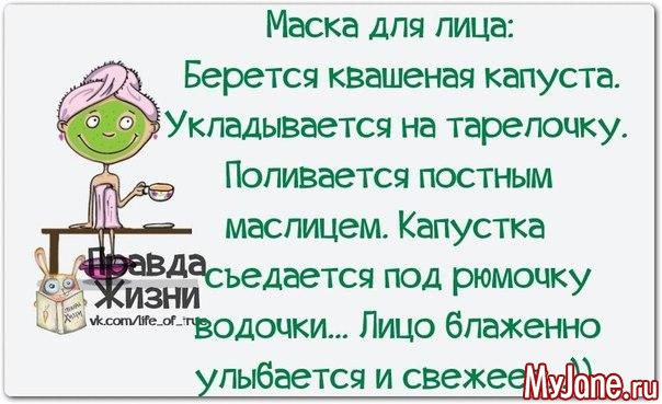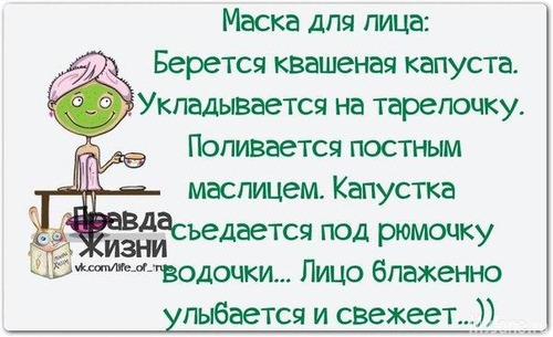Парижская маска: толстый слой квашеной капусты наложите на предварительно очищенное лицо на 15 - 20 минут (при жирной коже - до 30 минут), затем смойте прохладной водой.