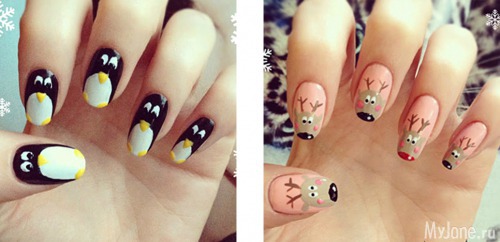 Возможно, это как-то и не очень традиционно – все же пингвины не совсем символы Рождества и Нового года, однако именно эта нелетающая птичка с Южного полюса – смешное напоминание о том, что снег может быть веселым. Пингвины на ногтях – повод лишний раз улыбнуться.