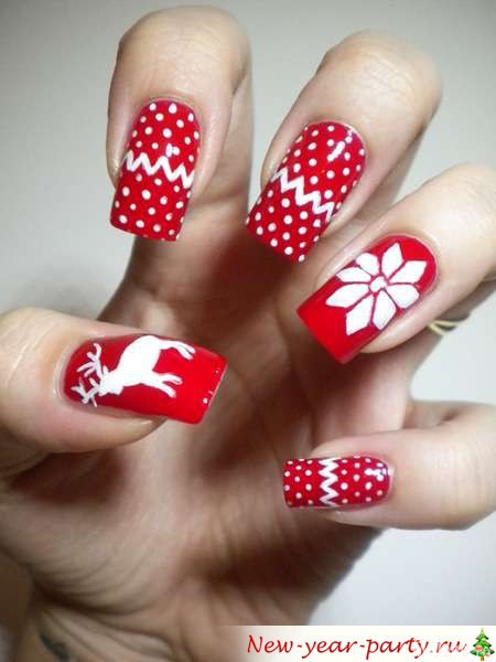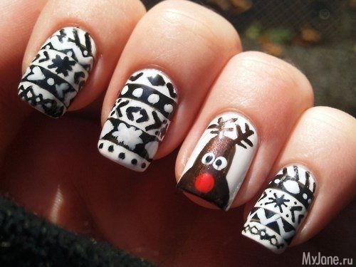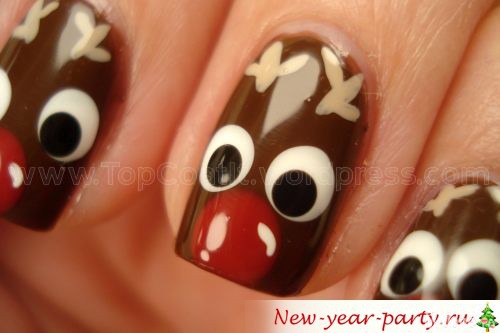 Для жителей многих стран олени – такой же символ зимних праздников, как, скажем, елка или Санта. Поэтому именно фигурки оленей – основа множества идей новогодних рисунков для ногтей, которые могут и очень простыми в исполнении.