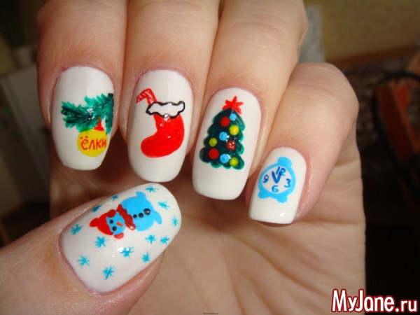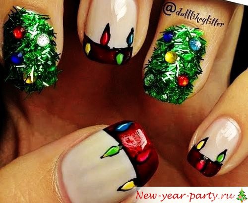 Это просто и изящно, кроме того, возможно вариации: зажгите праздничные огоньки на ногтях – это отличная идея простейшего рисунка!