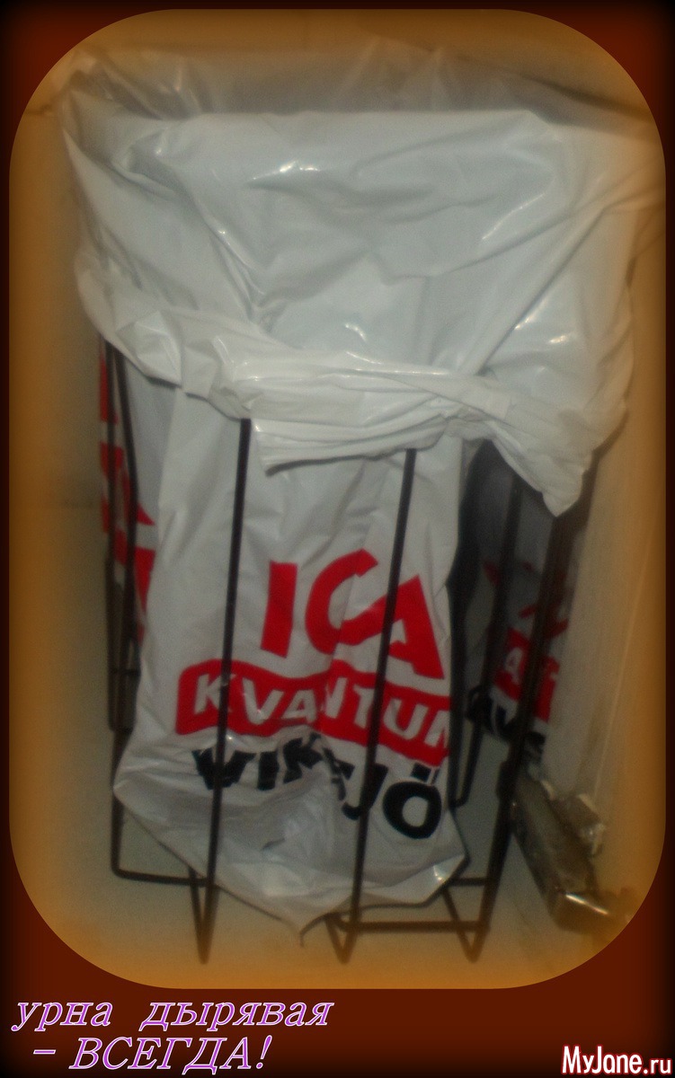 Эта корзина у меня служит для сбора грязных мясных и рыбных упаковок.