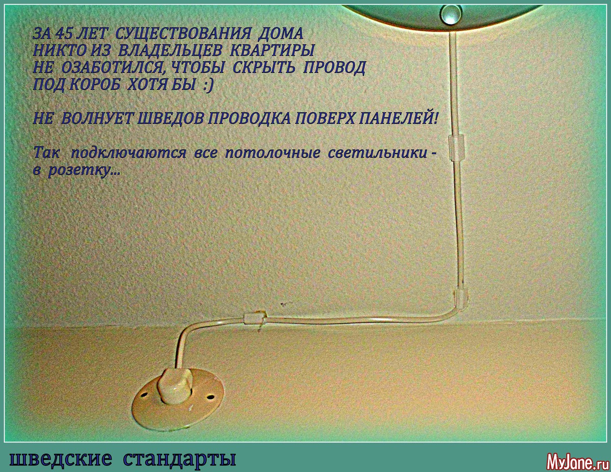 Сейчас продемонстрирую как тут прокладывают провода от потолочных светильников: