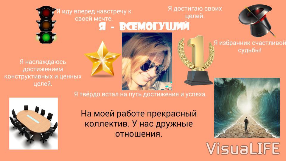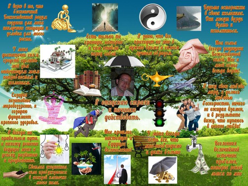 Вот несколько примеров карт сделанных в мобильном приложении "Карта желаний 2" - это может вас вдохновить и мотивировать.