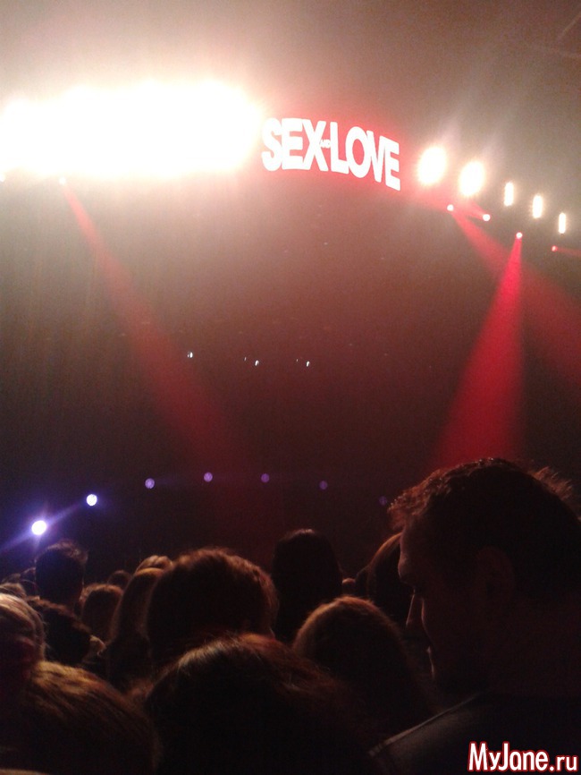 В конце были огромные шара с надписью"SEх and Love"Суперская идея, огромный зал и огромные, белые шары, которые люди отталкивают, попозже те, кто был посмелее