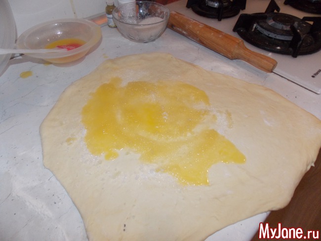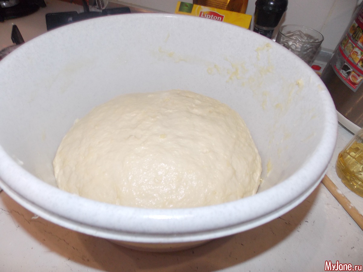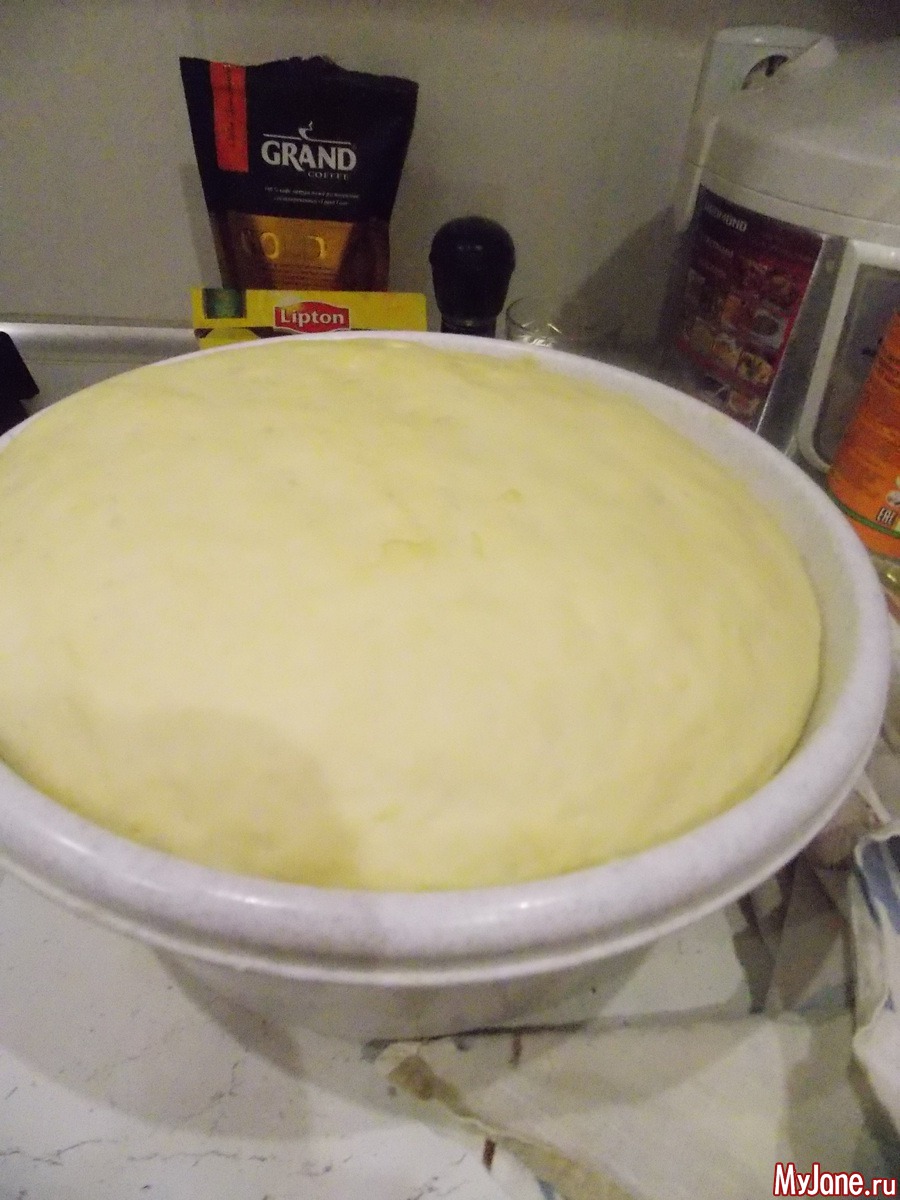 Сначала нагревается молочко не сильно, в нем растовряю дрожжи и сахар, добавляю муки чтобы тесто получилось как на оладьи, жду пока поднимется, начнет пузырится в тепмлом месте. В микроволновке растапливаю сливочное мало и после того, как опара готова добавляю его к ней, размешиваю потихонечку и добавляю остальную муку, не спеша, сначал азамешиваю лопаткой, потом обминаю руками. Кактолько тесто начнет отставать от рук, накрываю его салфеткой и длу подъема. В идеале, чтобы два раза поподнималось, но я делала уже вечером (т. е. сейчас