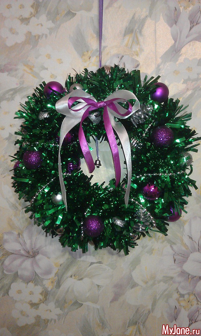 Сварганила венок. Довоооольная. аж жуть))) Повесила пока на кухне. И че то жалко мне его вешать в подъезд стало)) Решила потом сделать небольшой и все таки повесить)