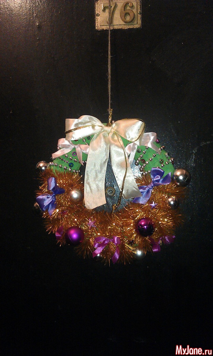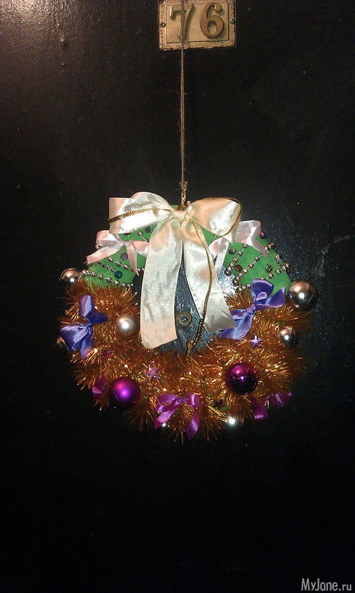 И решила я сварганить а-ля рождественский венок на свою дверь и повесить ее со стороны подъезда. Заходишь домой а тута тыдыщь - праздник!