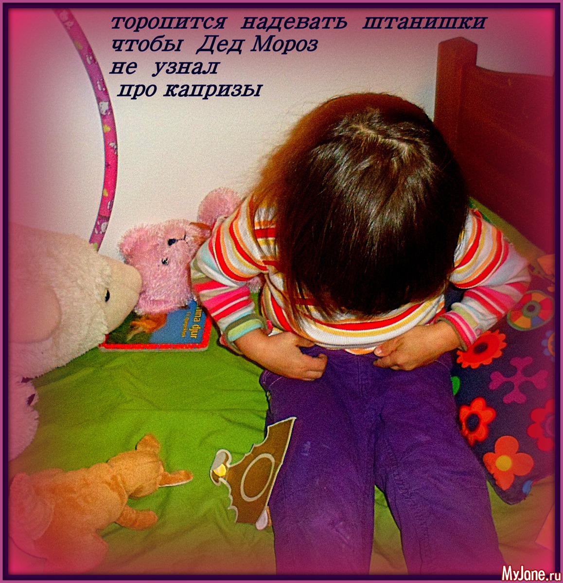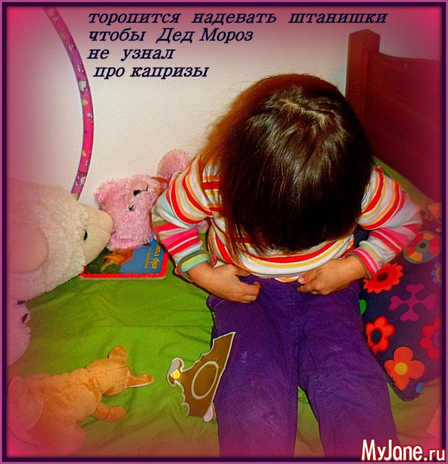 Сразу заторопилась и спешно стала натягивать брючки на себя, чтобы Дед Мороз не увидел, что девочка непослушная...